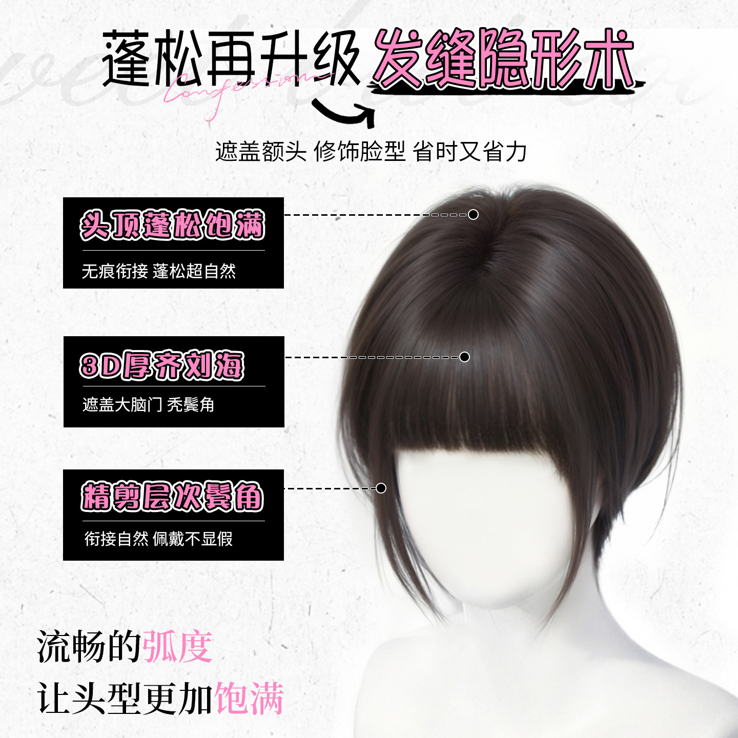 天猫齐厚漫画刘海假发女片头顶自然前额增发量蓬松仿真发齐刘海补发片