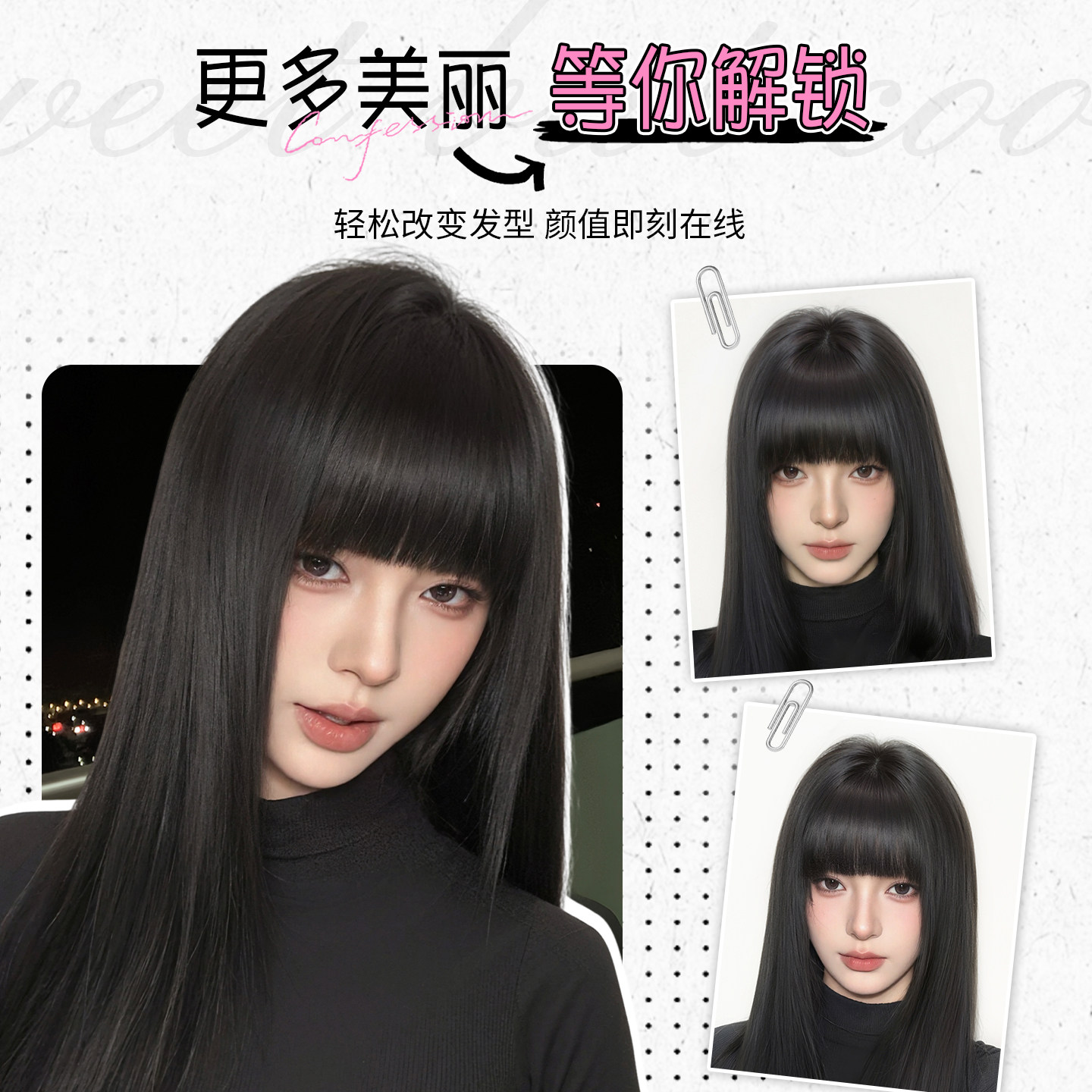 假发女长发漫画齐刘海真发全真人发黑长直无痕隐形蕾丝递针全头套