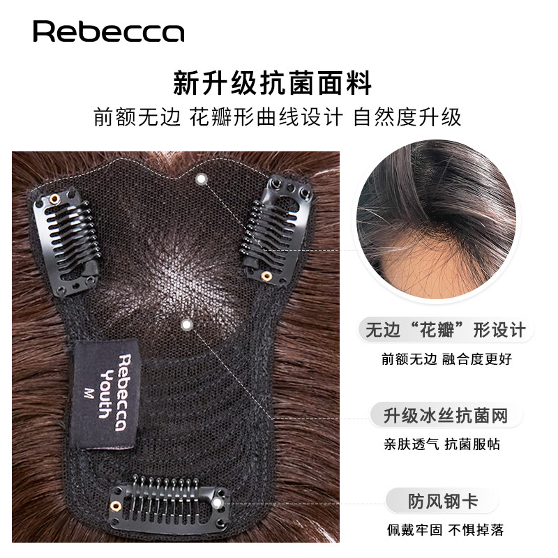 瑞贝卡假发女全真人发冰丝抗菌网头顶补发块,专为女性设计,采用100%真人发丝,自然逼真,触感柔顺。创新冰丝抗菌网底,轻盈透气,有效抑制细菌滋生,佩戴舒适不闷热。隐形设计贴合头皮,蓬松有型,轻松遮盖稀疏、白发或局部脱发问题,瞬间提升发量与自信。适用于日常通勤、社交聚会或特殊场合,佩戴便捷,无需专业固定,自然融入原生发。瑞贝卡以高品质工艺与人性化设计,为女性提供安全、舒适、美观的补发解决方案,重拾浓密秀发与优雅气质。