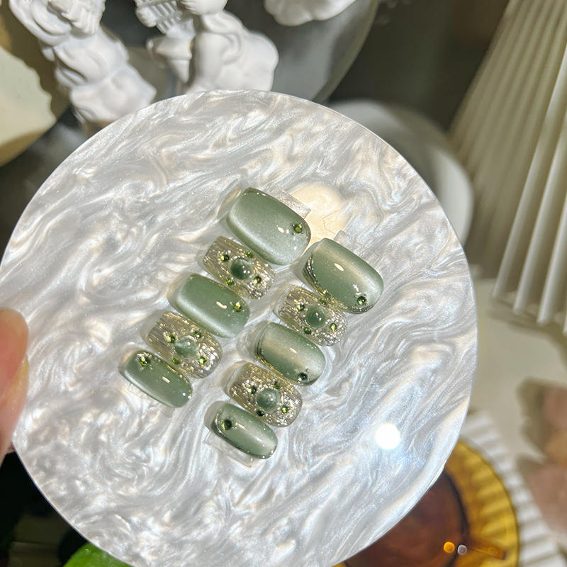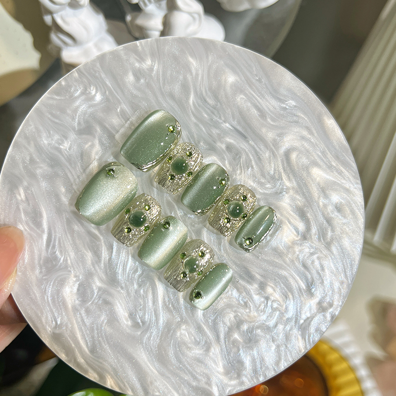 淘宝Lilynail绿野仙踪手工穿戴甲夏日清新美甲布契拉提翡翠猫眼指甲贴