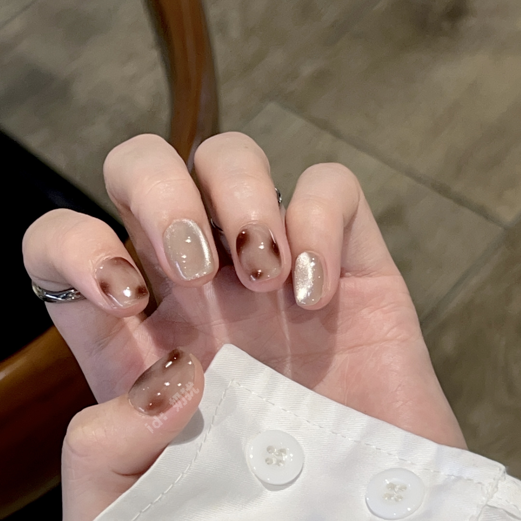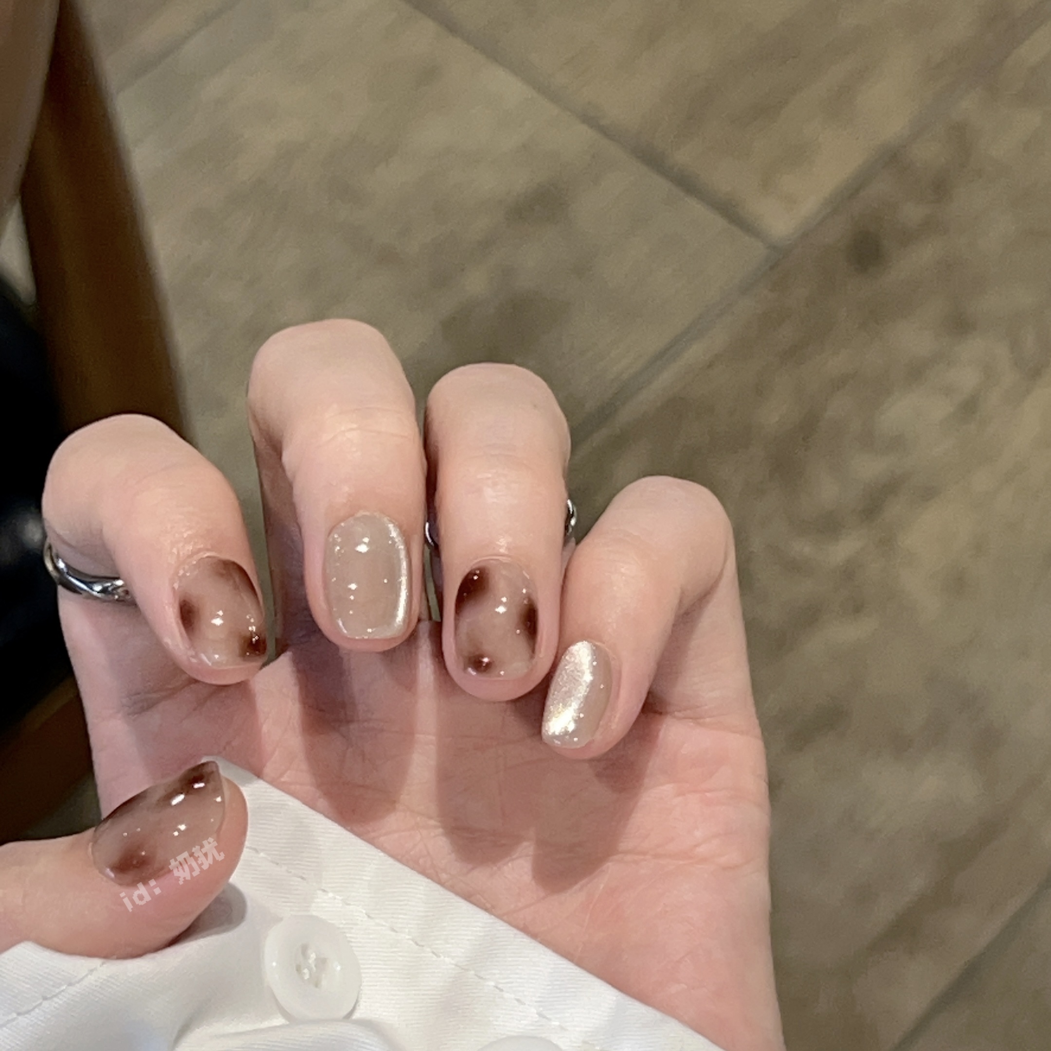 淘2025新款早秋小短甲手工穿戴显白咖啡巧克力深棕小众美甲短款贴片