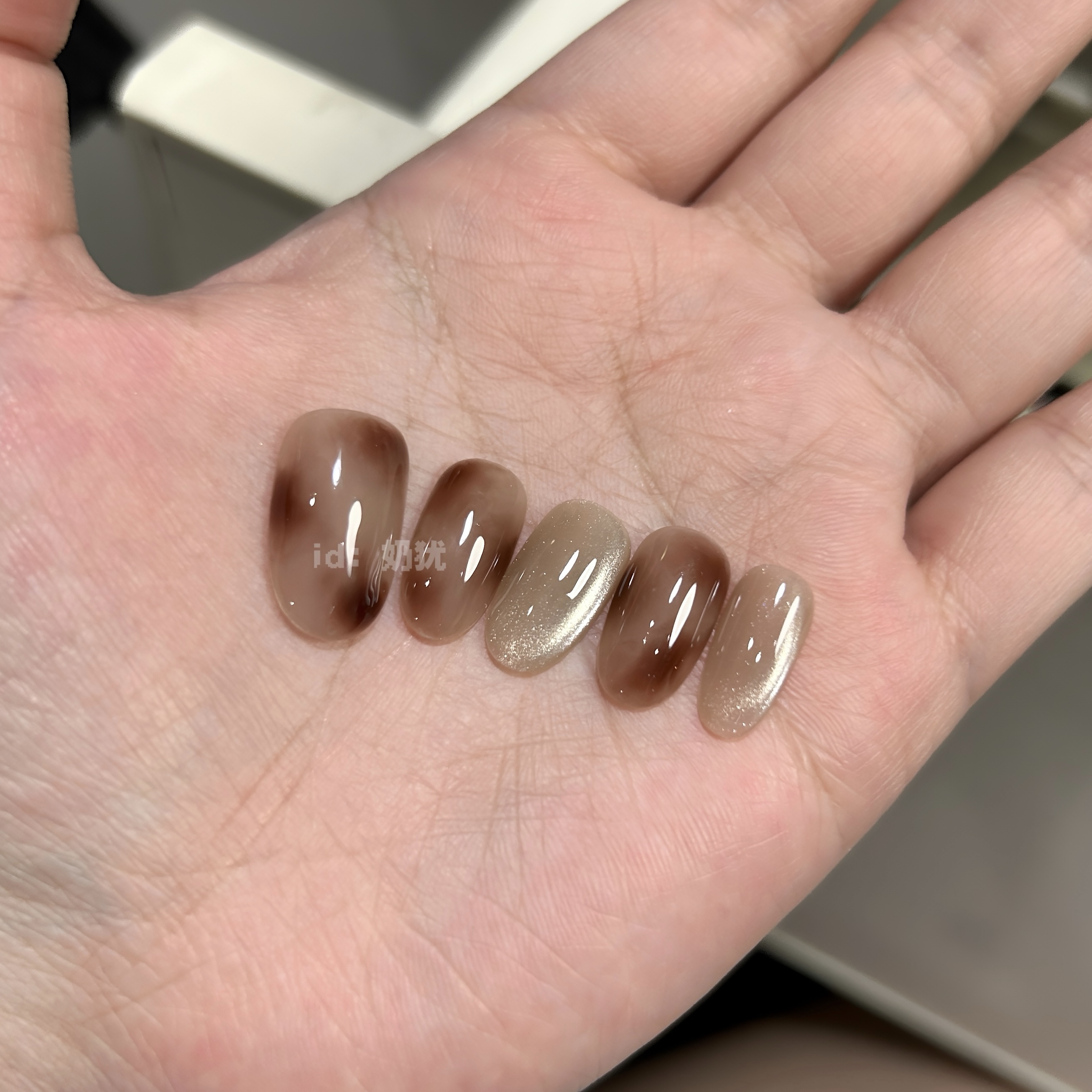 2025新款早秋小短甲手工穿戴显白咖啡巧克力深棕小众美甲短款贴片