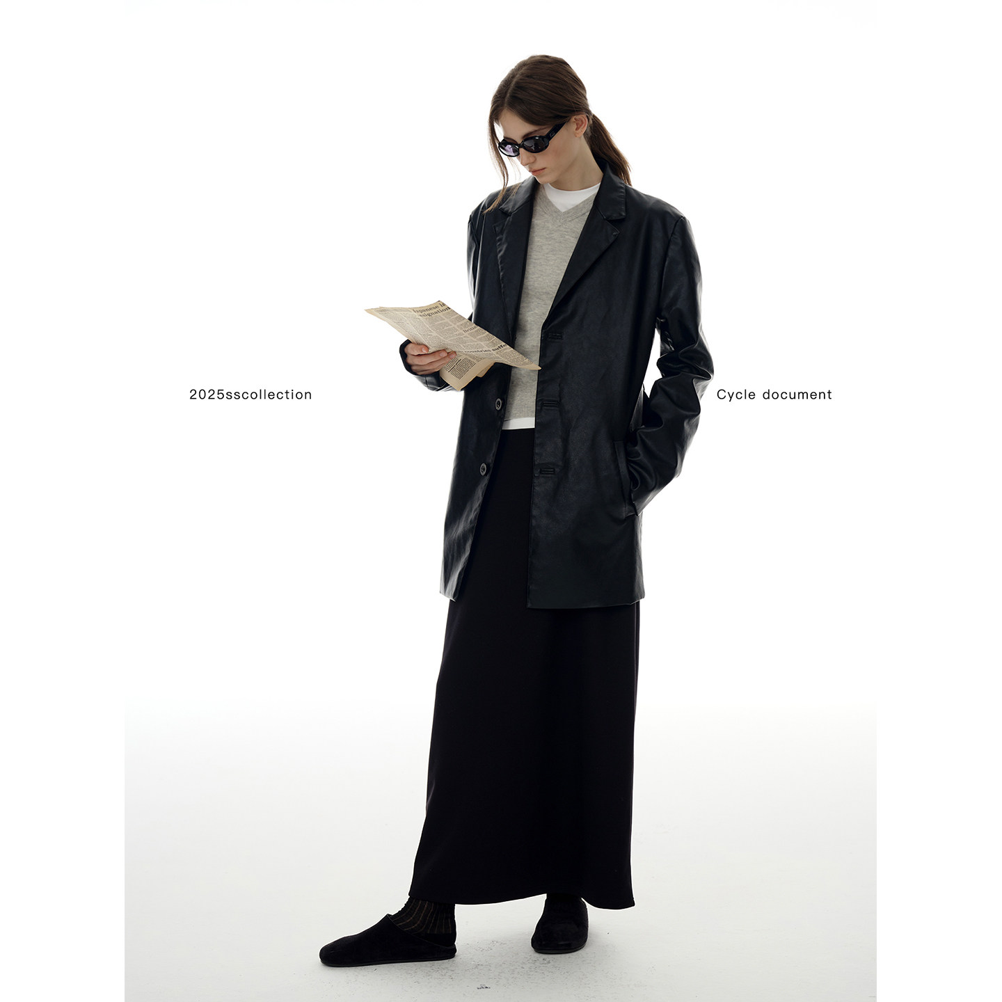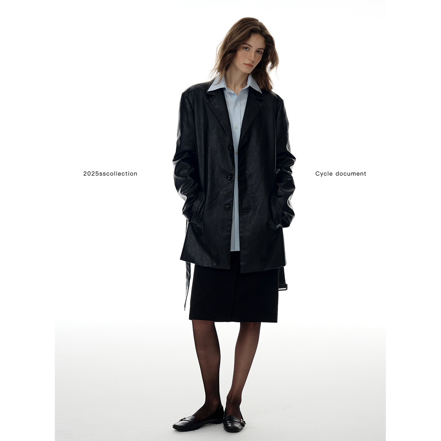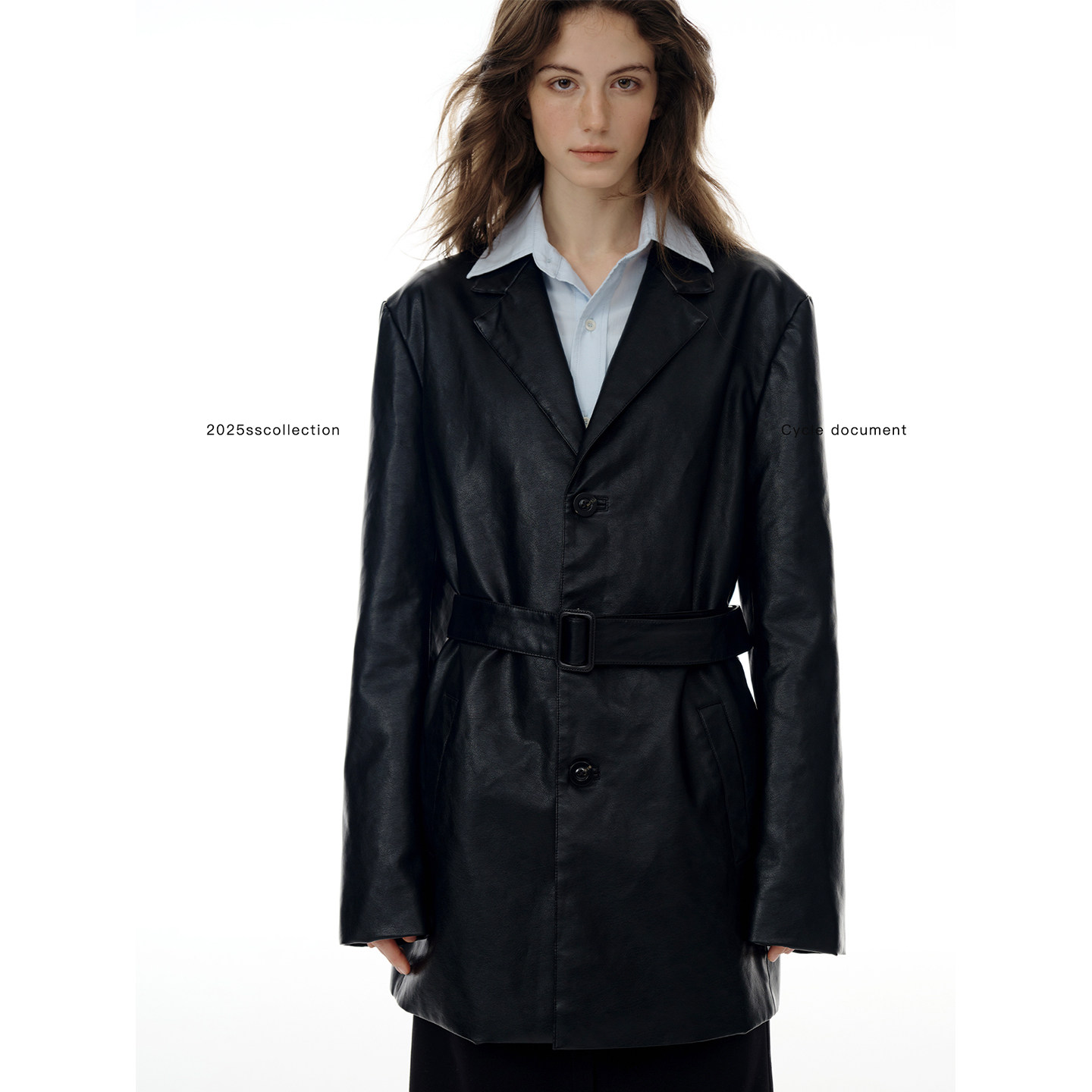 淘宝Cycle Document 黑色酷飒风宽松廓形pu皮衣外套女高级感收腰大衣