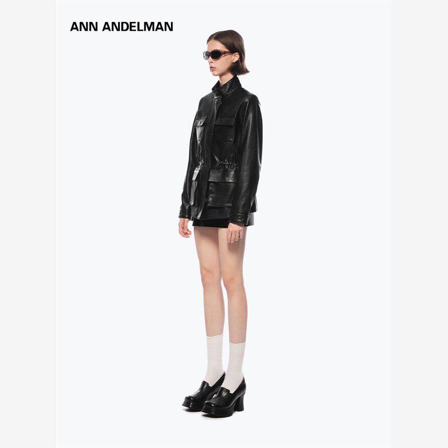 淘宝ANN ANDELMAN工装皮衣女秋冬高级感又酷又飒抽绳皮收腰黑色皮外套