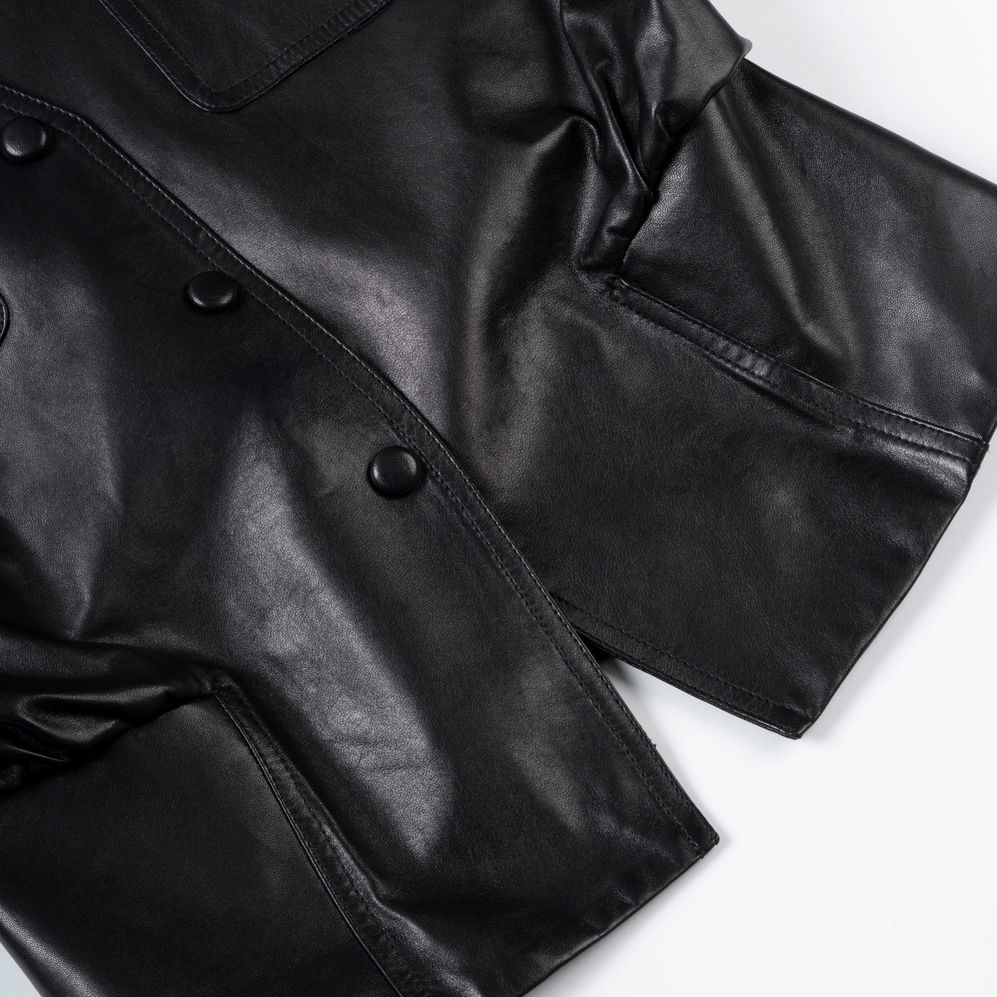 LYNEE【金标D奥小姐】黑色V领羊皮真皮皮衣,采用优质头层羊皮打造,触感柔软、光泽自然,兼具保暖性与高级质感。经典V领设计修饰颈部线条,凸显优雅气质;收腰系带剪裁巧妙勾勒女性曲线,展现利落身形。袖口与下摆细节精致,搭配高品质PU皮拼接,提升整体层次感与时尚度。无论是搭配裙装或裤装,都能轻松驾驭通勤、休闲或约会场合。LYNEE以匠心工艺融合现代美学,为都市女性打造兼具型格与舒适的穿搭选择,彰显独立自信的时尚态度。