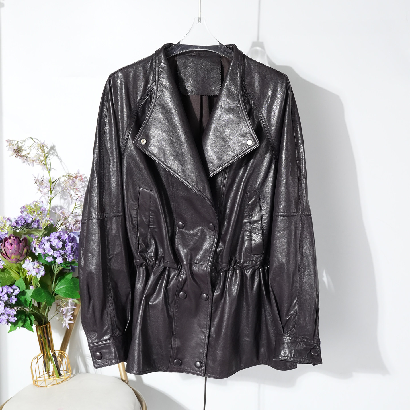 2026春季新款女士真皮皮衣,精选进口超薄全植鞣油蜡绵羊皮,质感轻盈柔软,兼具透气性与耐用度。独特的油蜡工艺赋予皮革自然光泽与复古韵味,随穿着时间推移更显个性光泽。宽松版型搭配可调节抽绳收腰设计,轻松勾勒身形,兼顾舒适与时尚。简约立领、流畅剪裁,展现都市女性的率性优雅。内里做工精致,细节考究,适合春日叠穿或单穿,轻松驾驭通勤、休闲等多种场合。这款皮衣将经典工艺与现代设计完美融合,是追求品质与风格女性的理想之选。