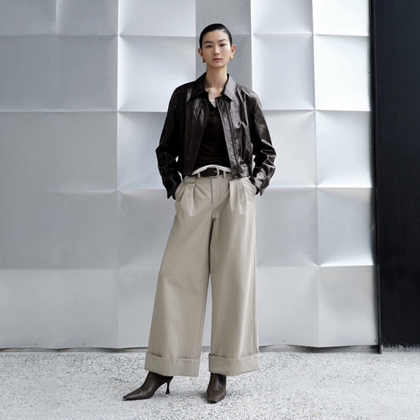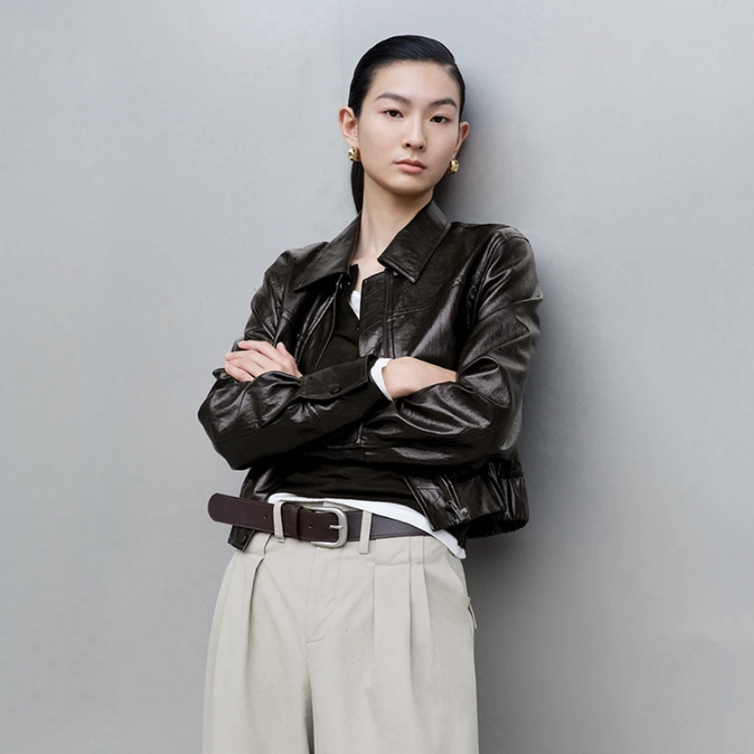 艾诺丝尚忆2026春季新款皮衣(货号:101122),以时尚POLO领设计融合经典短款剪裁,展现女性干练与优雅并存的独特气质。精选优质环保PU皮料,质感细腻、挺括有型,兼顾舒适与环保理念。简约利落的线条搭配精致金属拉链与袖口细节,凸显高级质感。百搭设计轻松驾驭通勤、休闲等多种场合,内搭T恤、衬衫或针织衫皆宜,轻松打造都市 chic 风格。多色可选,满足不同穿搭需求,是春季衣橱不可或缺的时尚单品,彰显独立自信的现代女性魅力。