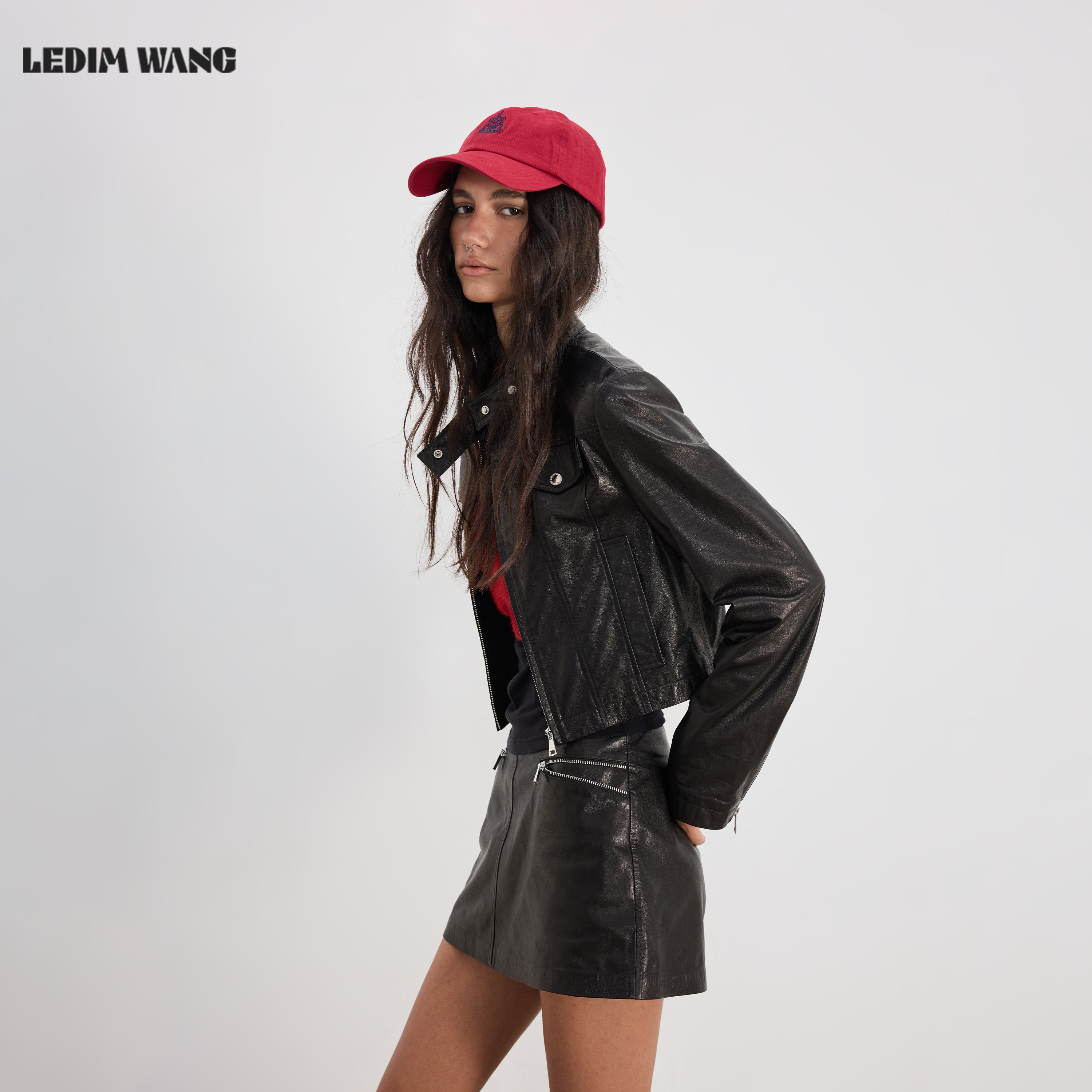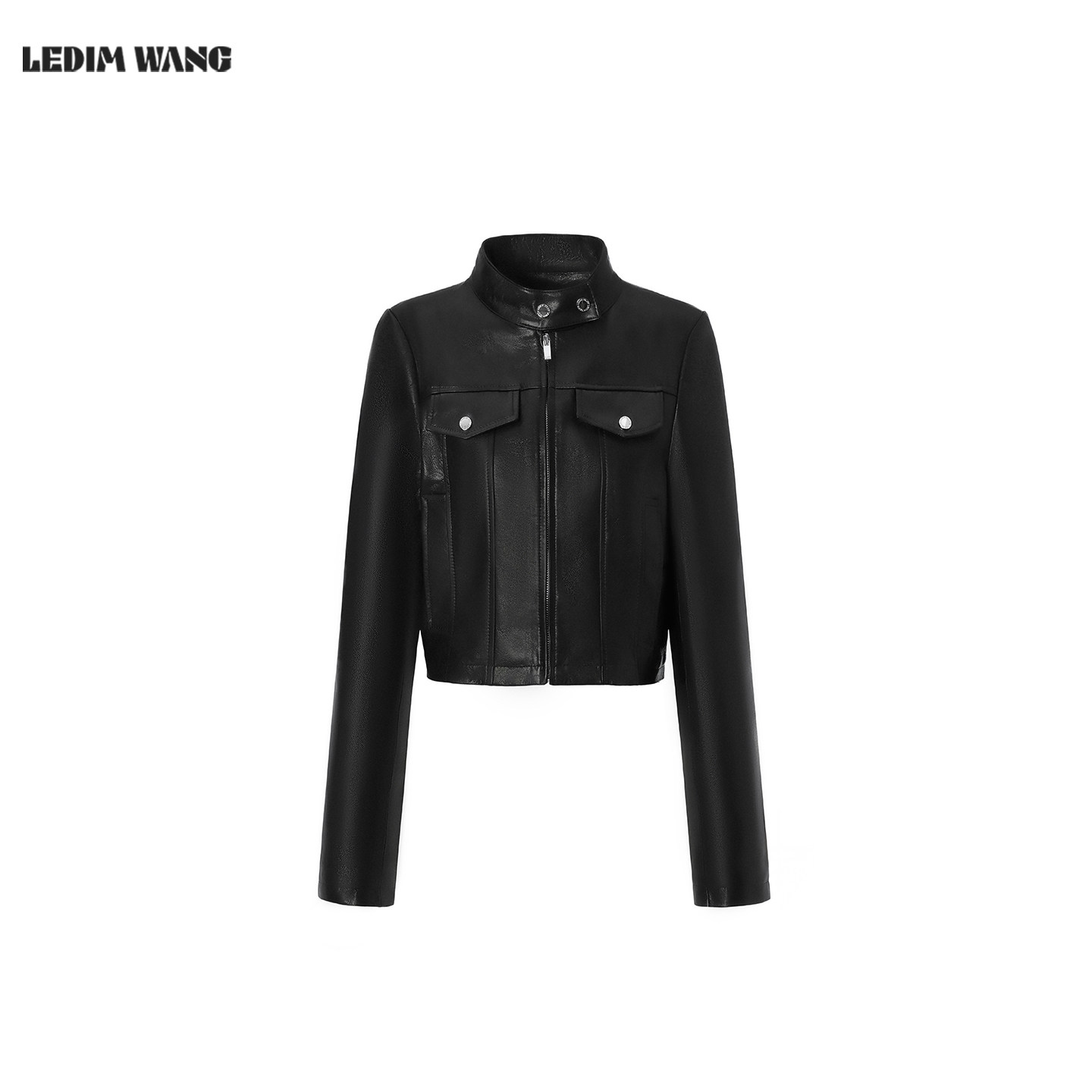 LEDIMWANG 2026春季新款立领短款机车皮衣,精选优质真皮羊皮革打造,质感细腻,柔软耐磨。采用哑光工艺处理,低调中彰显高级质感,尽显酷飒都市风格。立领设计利落有型,短款剪裁凸显腰线,轻松拉长身形比例,适合多种穿搭场景。金属拉链与精致走线细节考究,兼顾实用与美观。无论是搭配牛仔裤、连衣裙或半身裙,都能轻松驾驭,展现女性独立自信的时尚态度。这款机车皮衣集经典与潮流于一体,是春季衣橱不可或缺的百搭单品,为都市女性注入率性不羁的时尚魅力。