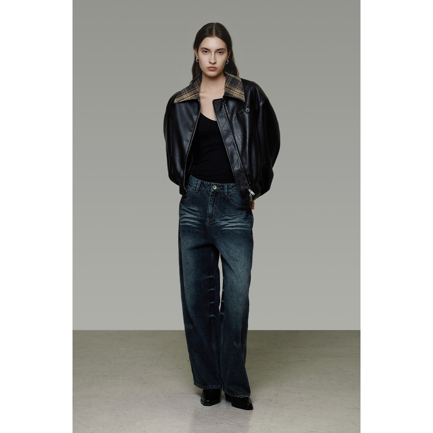 aaaaxbbb 蒸汽列车 复古宽松翻领皮衣高级感韩系慵懒外套百搭女秋