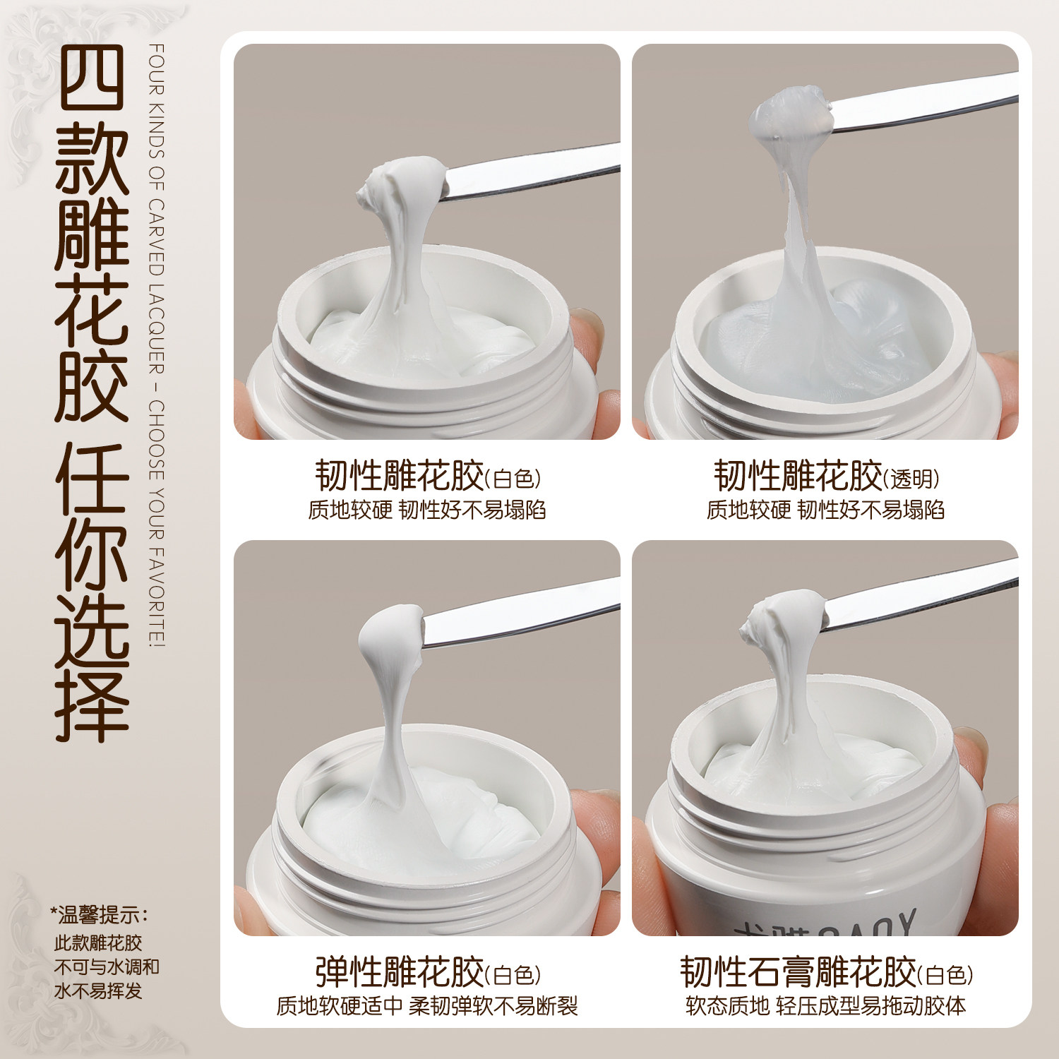 天猫gaoy戈雅美甲雕花胶立体软糖胶捏捏模具绸缎甲油胶白色石膏造型胶