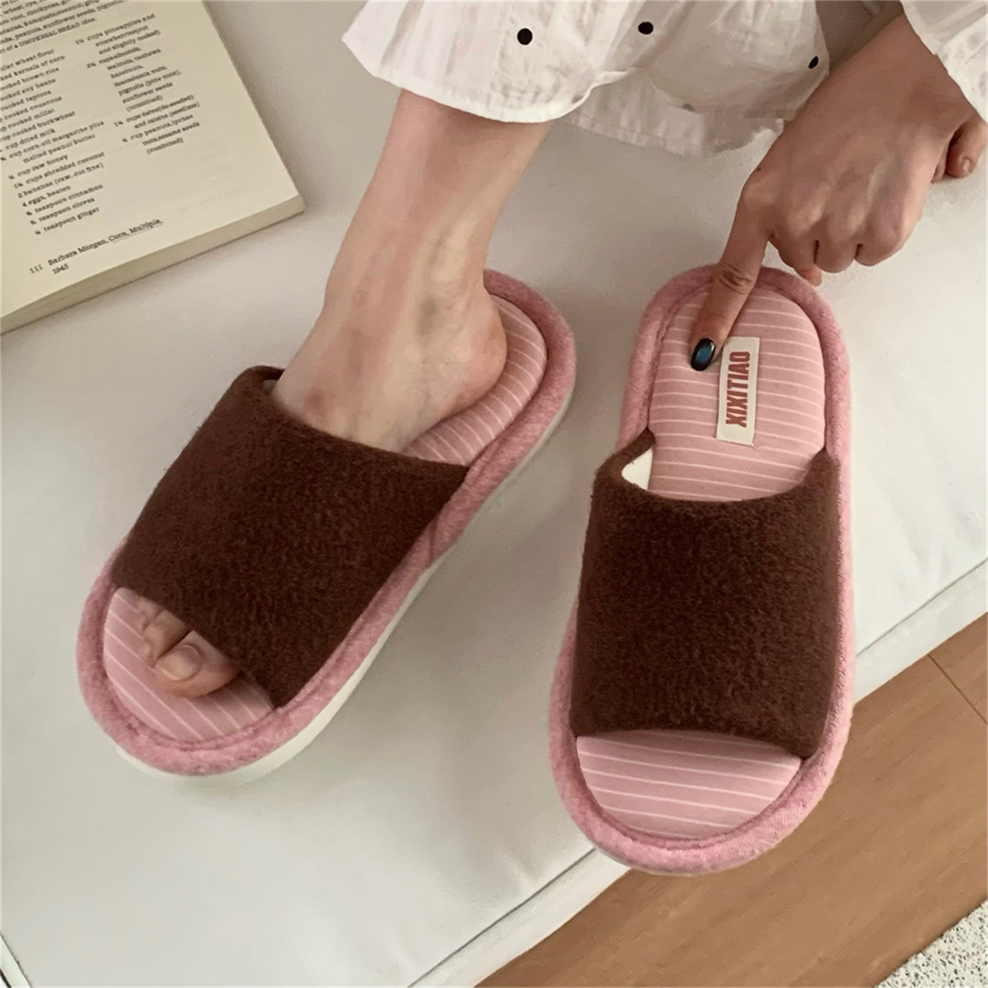 淘宝细细条 复古撞色条纹地板鞋秋冬男女日系棉麻居家一字棉拖鞋情侣