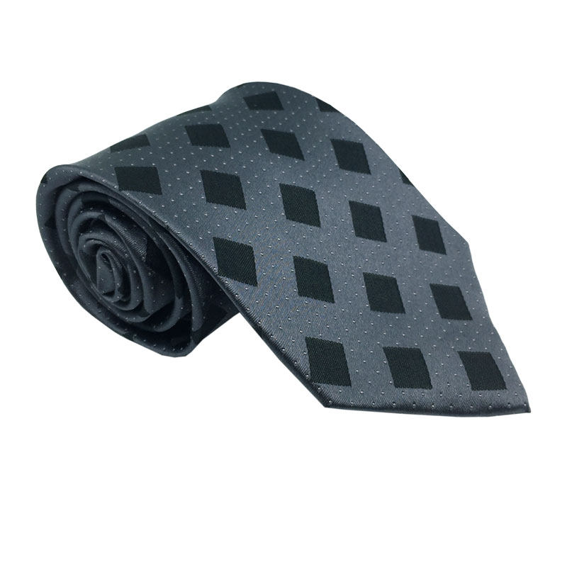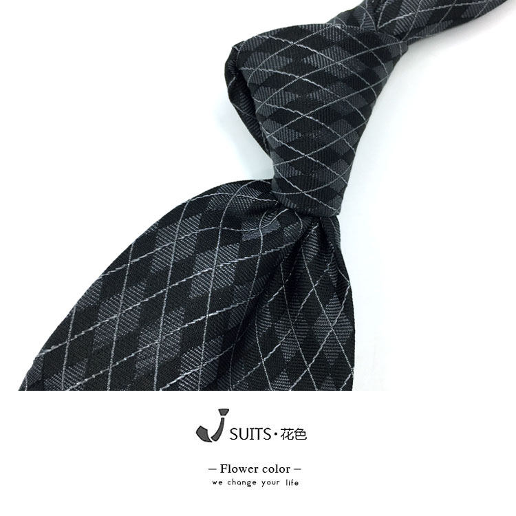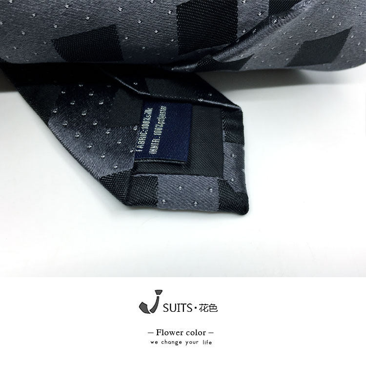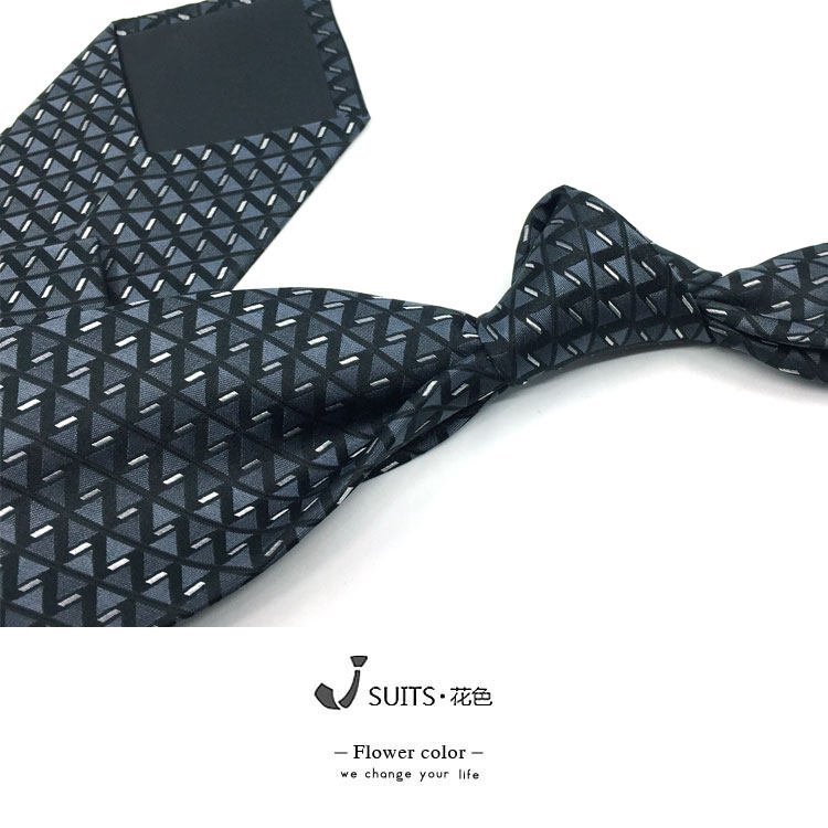 8公分 复古提花棉麻领带 深灰色绣花复古菱形花纹领带绅装领带