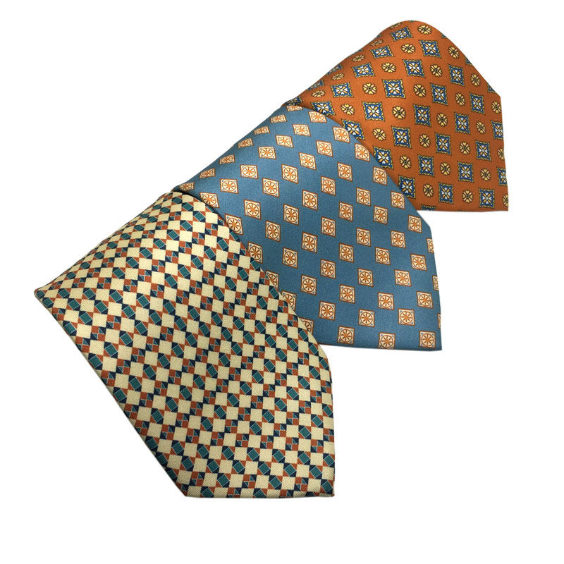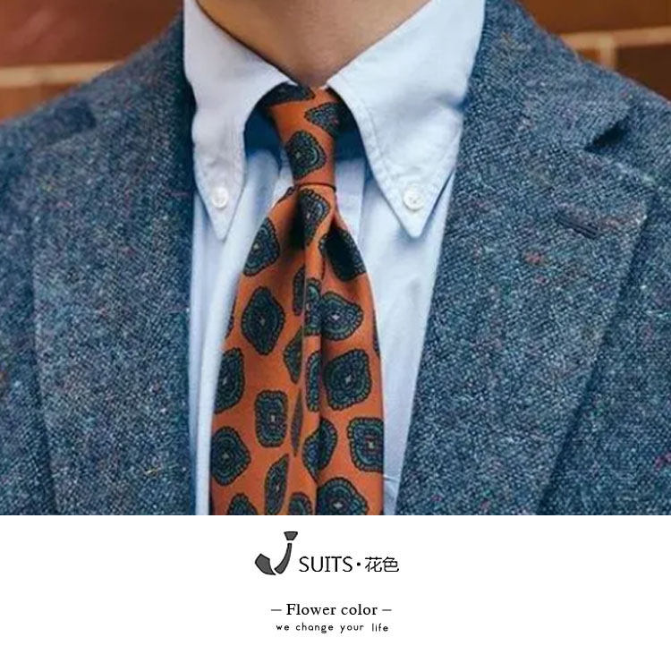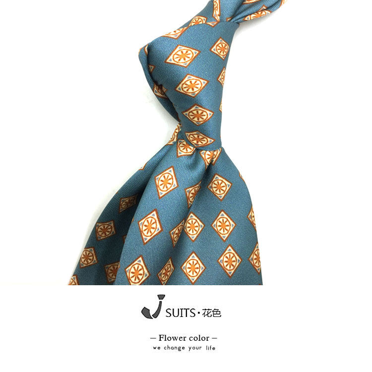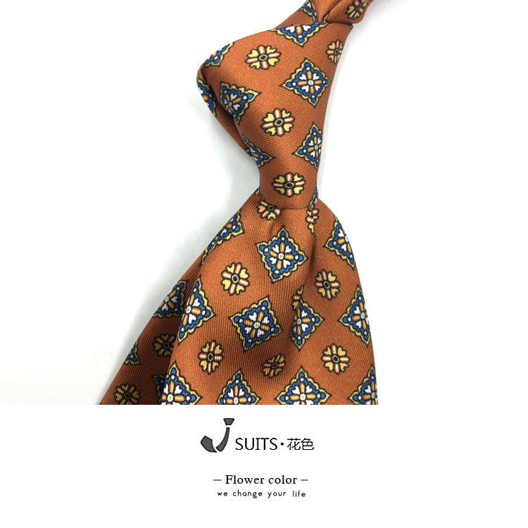 淘宝男女印花复古意式宽版9厘米花纹橘色蓝色文艺撞色结婚领带套装