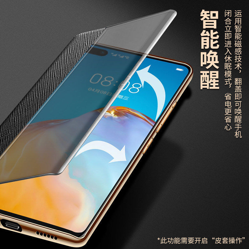 天猫适用华为p40手机壳P40Pro保护P40por十字纹皮套镜头全包ELS一AN00防摔ANA智能休眠5G外壳TN10男女P4O翻盖+加P