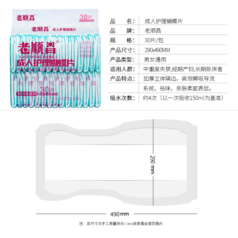 淘宝老顺昌尿不湿成人纸尿片老人护理蝴蝶片4包120片29*49CM加厚防漏