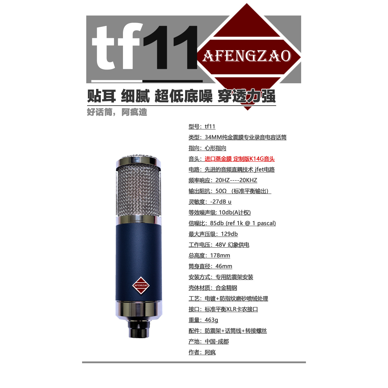 淘宝阿疯造tf11纯手工大震膜专业录音电容话筒复刻经典德国德根麦克风