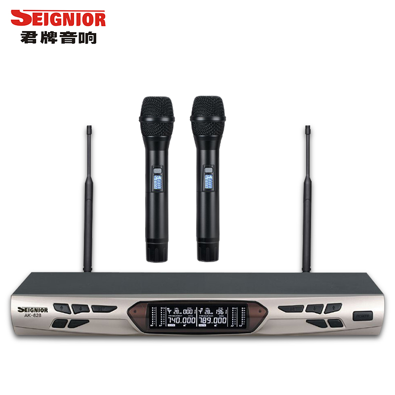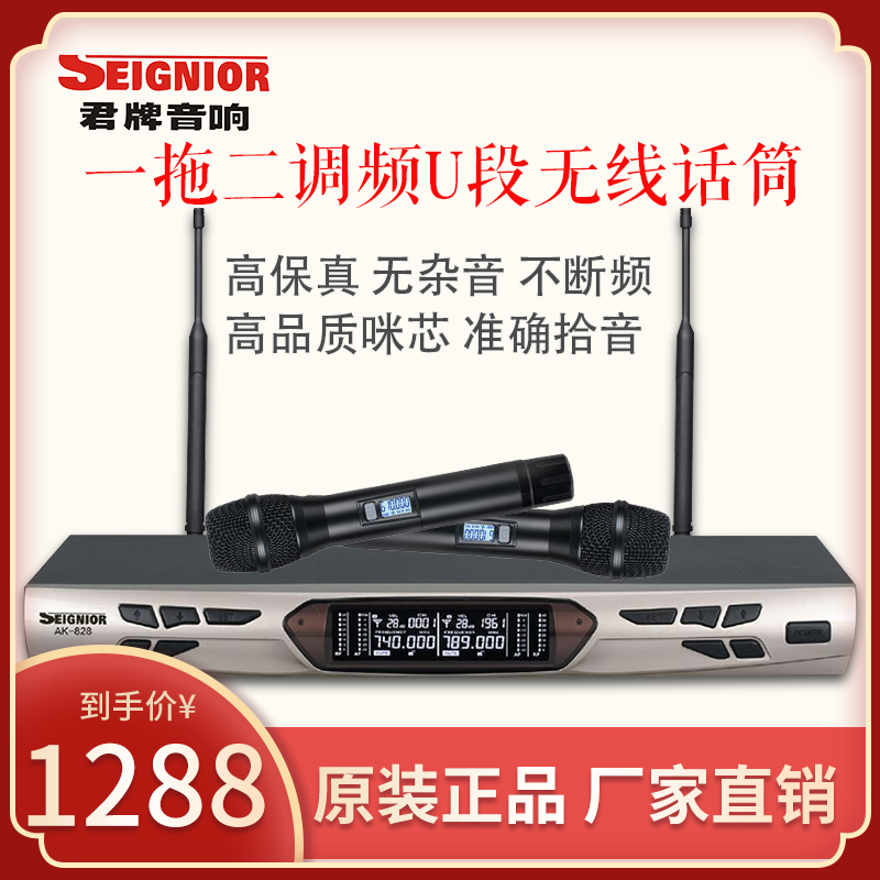 淘宝SEIGNIOR/君 AK-828 无线话筒一拖二U段家用K歌KTV会议舞台麦克风