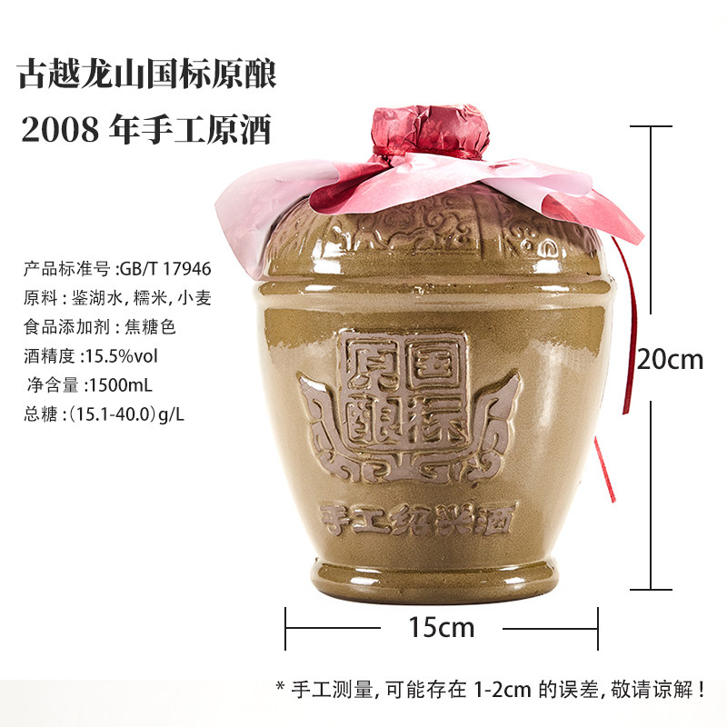 天猫【3斤装大容量】古越龙山绍兴黄酒2008年国标原酿花雕酒手工老酒
