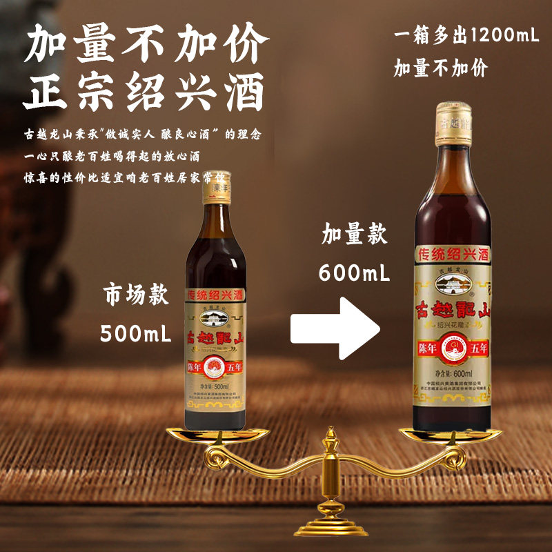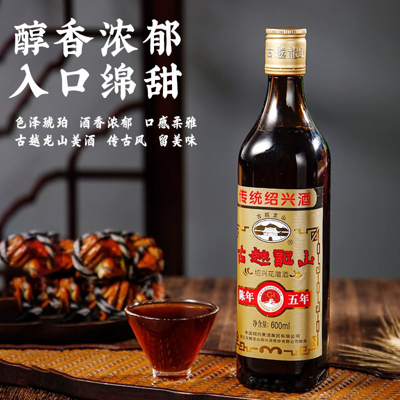 天猫古越龙山绍兴黄酒旗舰店五年陈花雕酒600ml*6瓶半干型糯米加饭酒