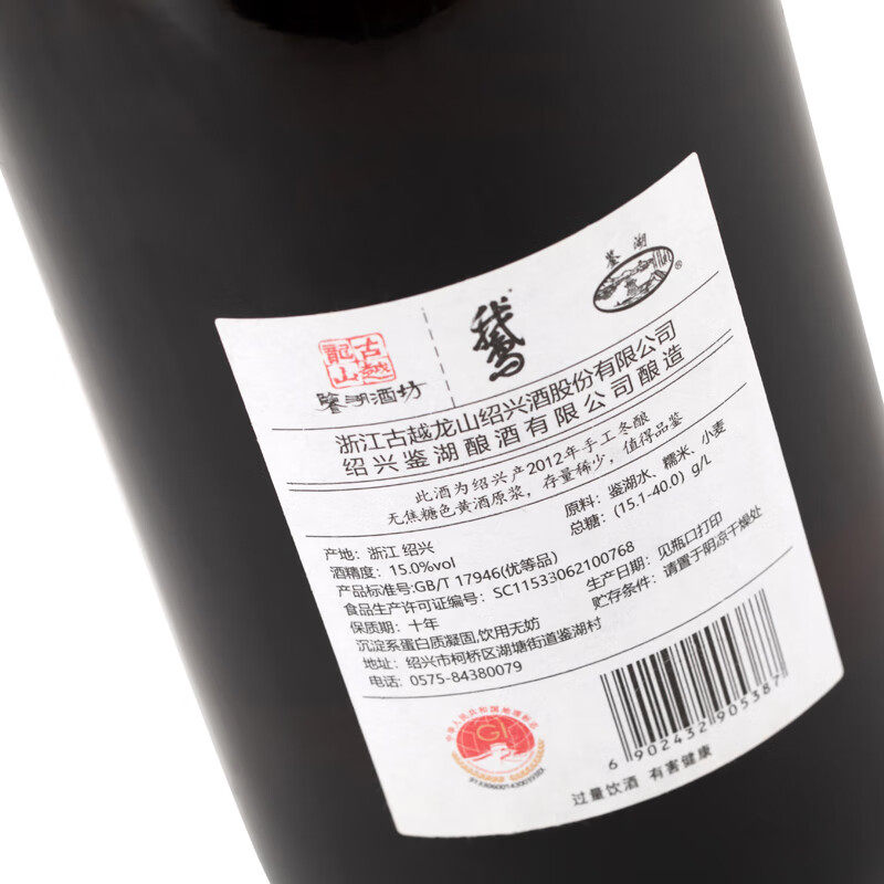 天猫古越龙山鉴湖酒坊黄酒鹅字号2012年原酒单瓶装无焦糖色半干型