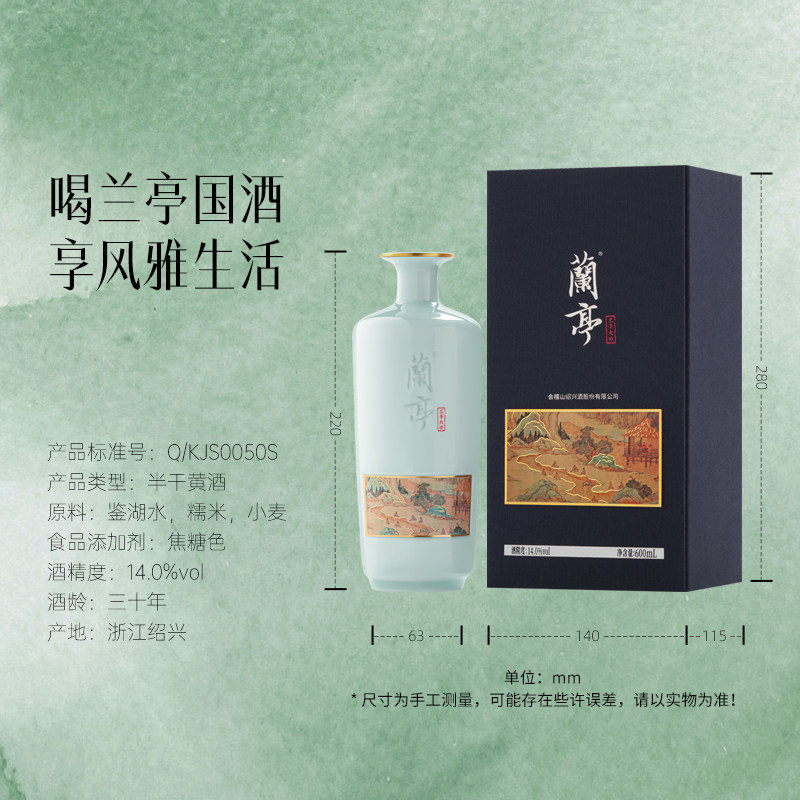 天猫会稽山绍兴黄酒 青瓷大师兰亭国酒600ml送礼三十年礼盒绍兴花雕酒