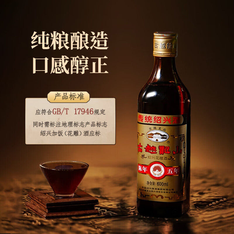 古越龙山绍兴黄酒陈年五年花雕酒,精选优质糯米、小麦与鉴湖水,秉承传统工艺精心酿制,经五年窖藏陈化,酒体醇厚,香气馥郁。酒液呈琥珀色泽,口感甘润柔和,回味悠长,兼具饮用与烹饪双重价值。600ml×2瓶装设计,适合家庭聚餐、节日馈赠或日常佐餐。作为绍兴老酒代表,古越龙山花雕酒不仅承载着千年酿酒文化,更是中华饮食文化的重要载体。无论是温饮、冰镇,还是用于炖煮海鲜、肉类去腥提鲜,皆能彰显其独特风味,是品味传统与品质生活的上佳之选。