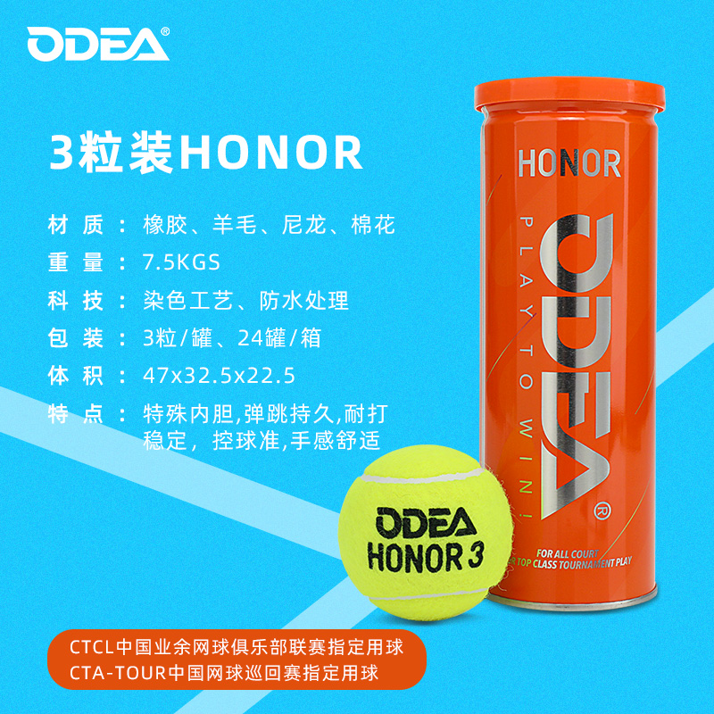 天猫odear欧帝尔网球学生业余训练高级比赛网球铁罐3粒装网球Honor