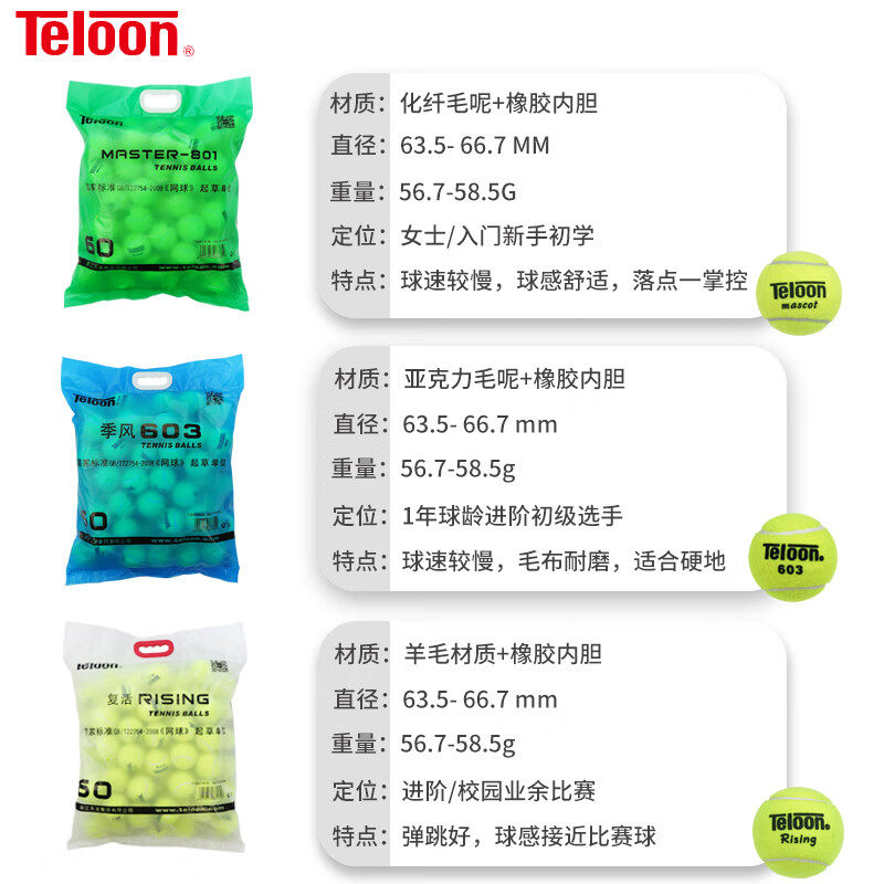 淘宝Teloon天龙网球801 603 Rising复活高弹耐磨初学进阶训练比赛网球