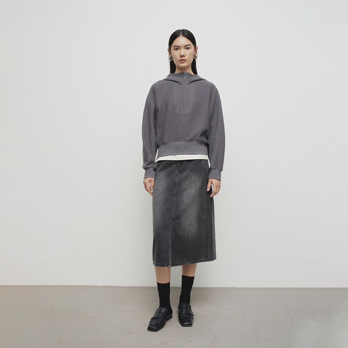华吉言【小自由】澳羊毛混纺后双拉链百搭直筒毛呢半身裙女冬季