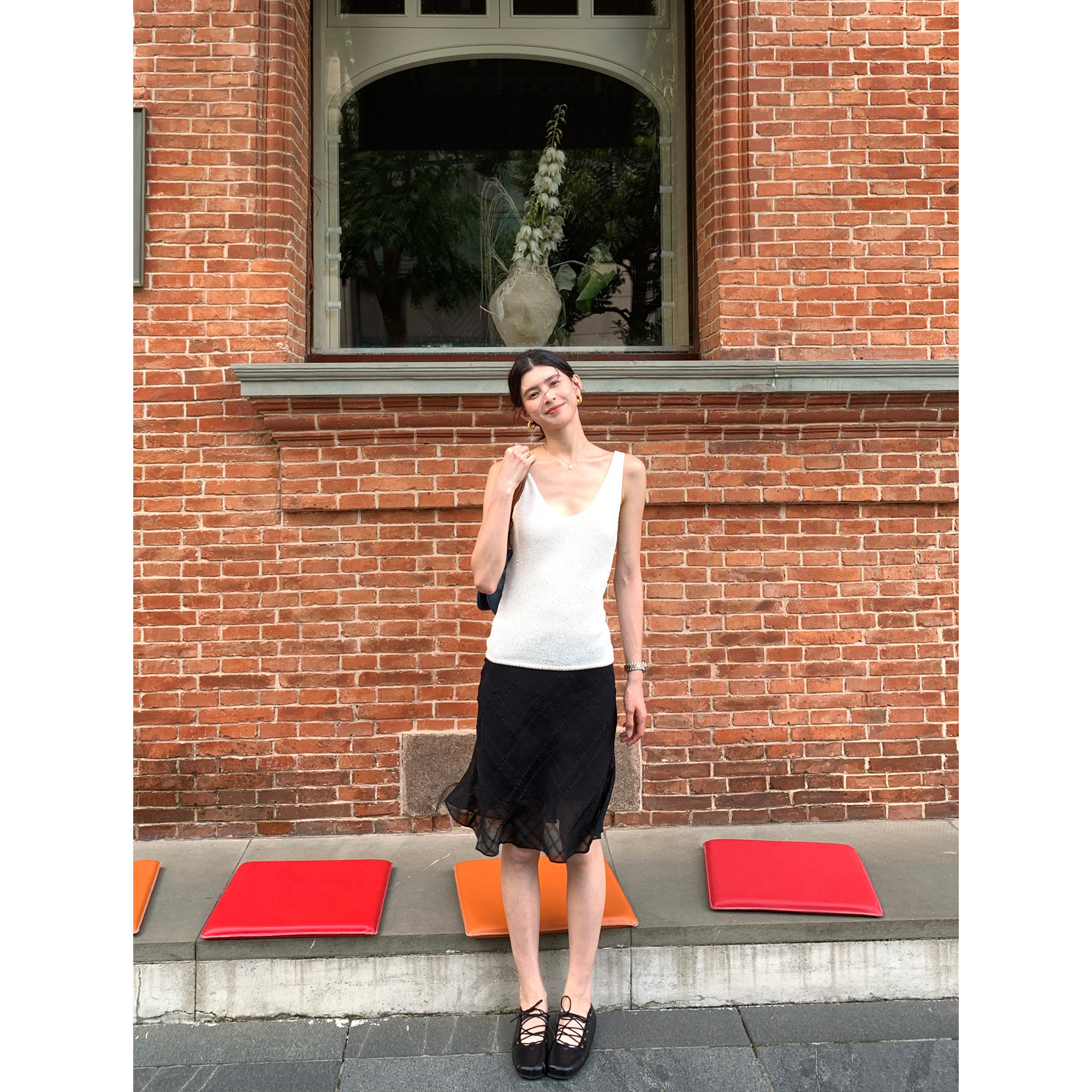 淘宝pusumede 云纱拂夏 复古半身裙女花边设计感网纱格纹a字包臀中裙