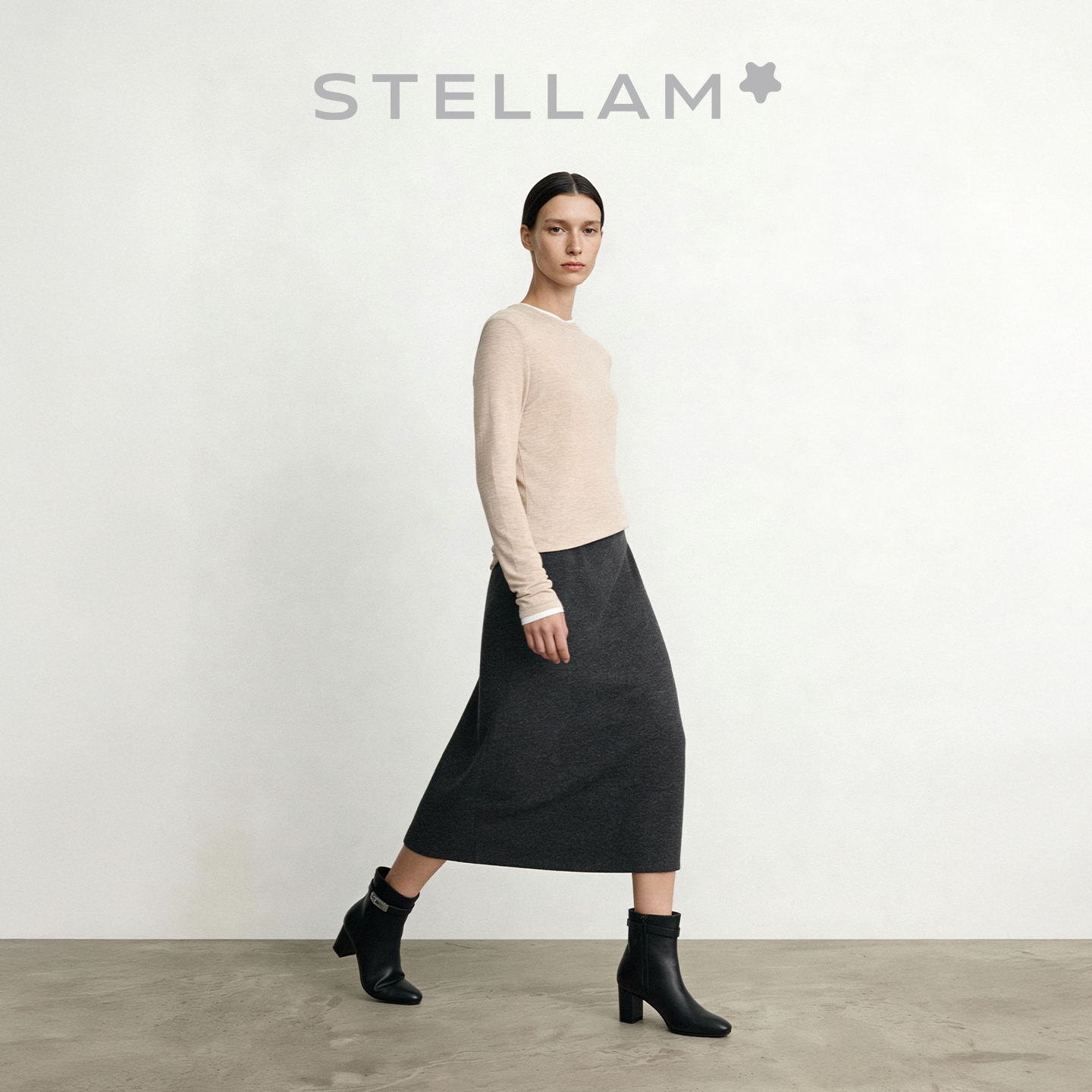 STELLAM女装推出的MALA系列100%羊毛针织半身裙,以极简设计诠释优雅与慵懒的完美平衡。精选优质纯羊毛面料,触感柔软亲肤,垂坠感极佳,自然贴合身形却不束缚,展现流畅线条。中长款设计恰到好处地修饰腿部轮廓,适合多种场合穿搭。简约无冗余装饰,仅以利落剪裁与细腻针织纹理凸显高级质感。无论是搭配针织上衣还是简约衬衫,都能轻松营造知性、从容的都市女性形象。MALA半身裙不仅是一件单品,更是一种生活态度的表达——在低调中彰显品味,在舒适中流露优雅。