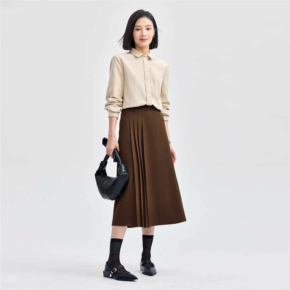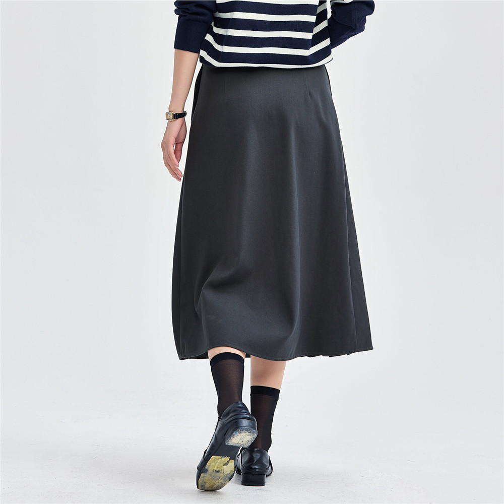 天猫佐丹奴半身裙女磨毛轻熟法式通勤风A字裙单侧压褶长裙女05464693