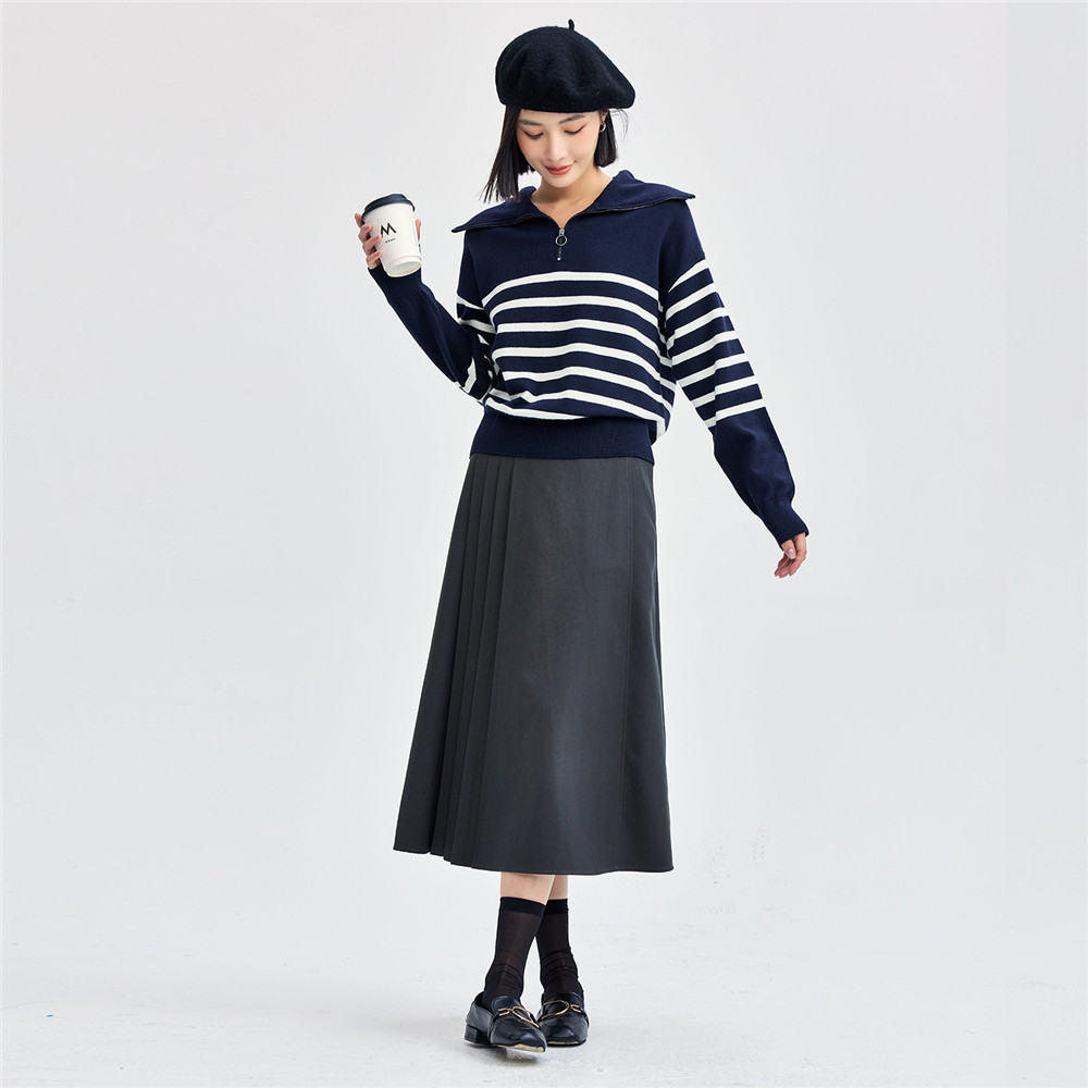 Eland衣恋半身裙女时尚学院风基础款百褶裙短裙冬季新款