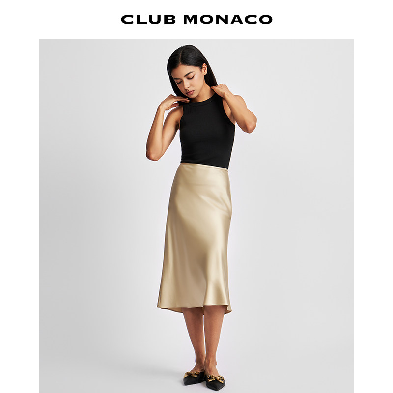 天猫【100%桑蚕丝】CLUB MONACO女装缎面鱼尾优雅半身裙