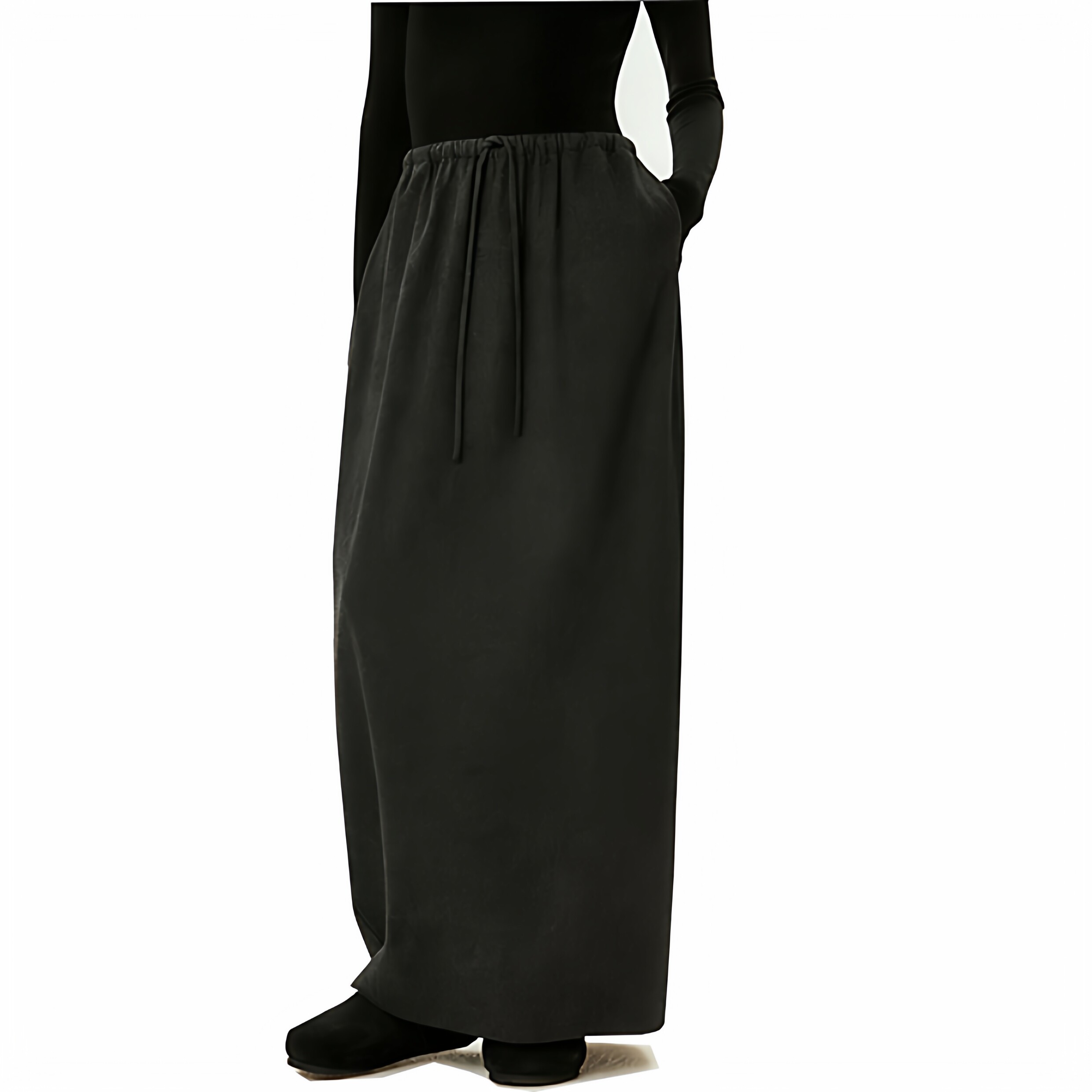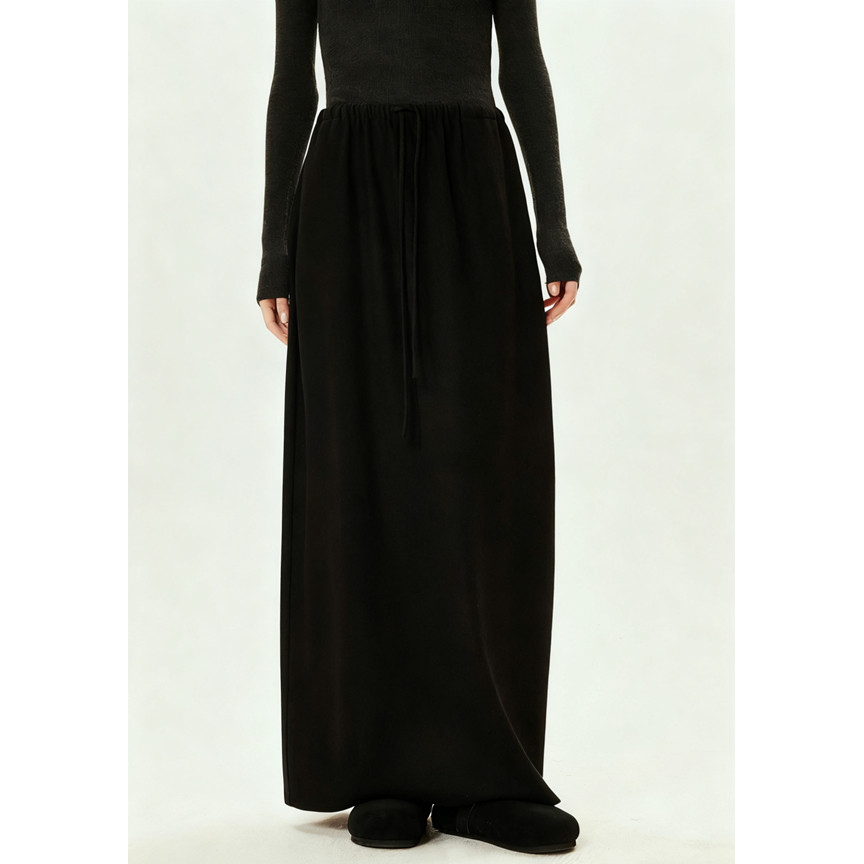 淘宝春秋2025新款松紧腰抽绳羊毛醋酸半身裙子女百搭舒适加厚黑色长裙