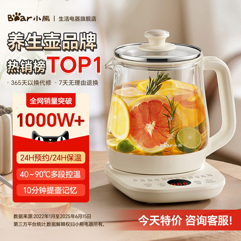 小熊养生壶炖煮一体煮茶壶2026新款,集炖、煮、保温多功能于一体,专为现代家庭健康养生设计。采用高硼硅玻璃壶体,耐高温、抗腐蚀,搭配304不锈钢发热盘,安全耐用。智能触控面板支持多档温度调节与定时功能,可精准满足不同食材的炖煮需求,如银耳羹、花茶、药膳等。内置长效保温系统,断电后仍可维持适宜温度,贴心便捷。简约时尚外观,适配多种家居风格。官方旗舰店直售,正品保障,售后无忧。小熊品牌专注小家电品质与创新,2026新款养生壶让您轻松享受健康慢生活,是居家养生、馈赠亲友的理想之选。
