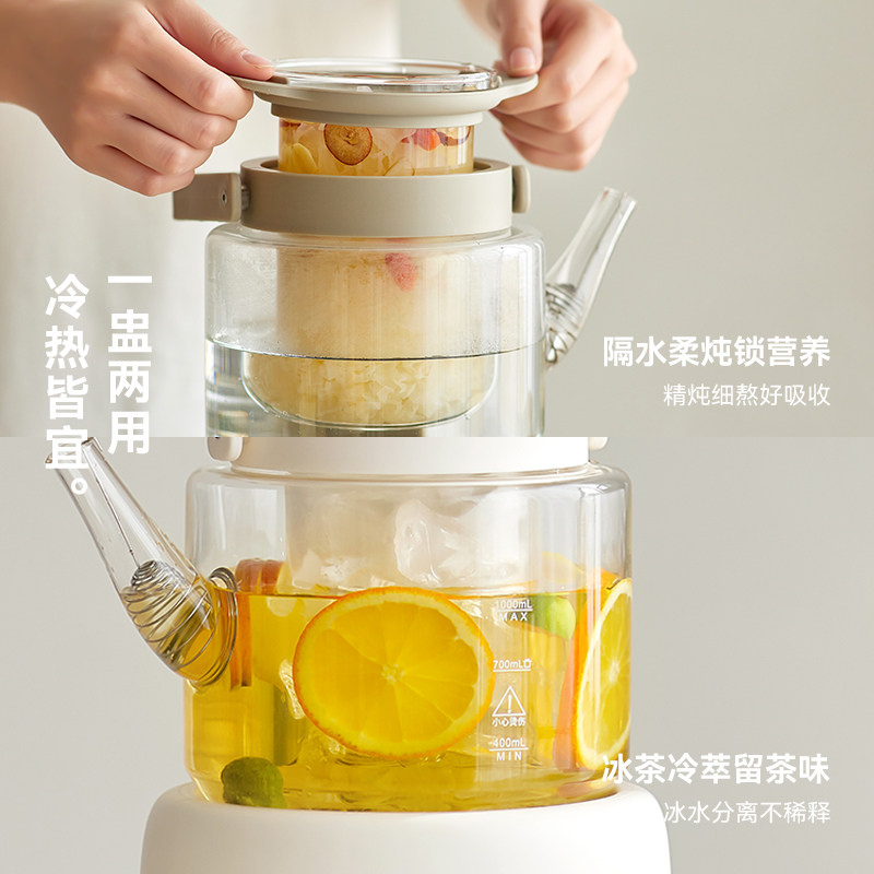 【明星同款】Olayks立时全玻璃养生壶,集炖煮、烧水、煮茶于一体,专为现代办公与健康生活设计。采用高硼硅耐热玻璃材质,通透明亮,耐高温防爆,安全无异味。小巧机身完美适配办公桌、茶水间,不占空间。一键操作,智能控温,可轻松煮花茶、银耳羹、养生汤等,满足多样需求。静音加热,节能高效,搭配滤网设计,茶汤分离更纯净。无论是加班提神,还是日常养生,都是贴心之选。颜值与实力并存,深受明星及都市白领喜爱,让健康生活方式触手可及。