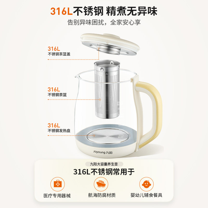天猫九阳养生壶2L大容量煮茶壶多功能家用烧水壶办公室煮茶器2025新款