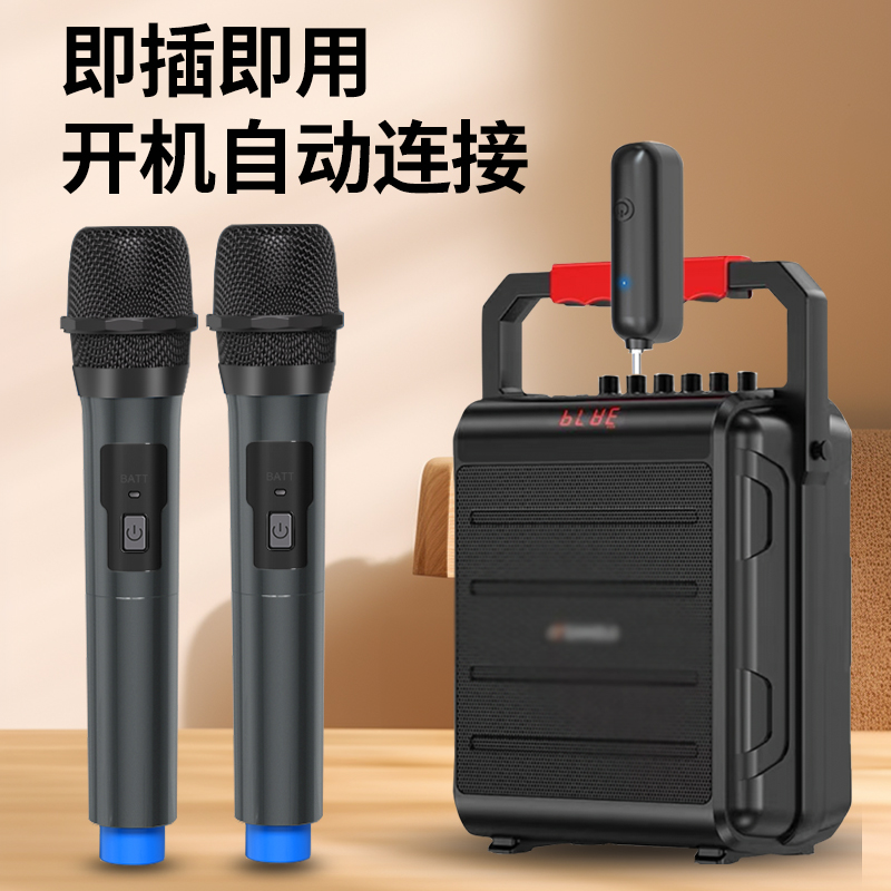 天猫充电式万能无线话筒家用K歌一拖二接收器户外蓝牙音响K唱歌麦克风