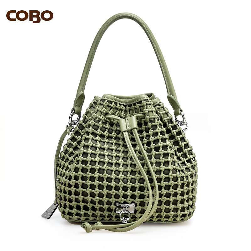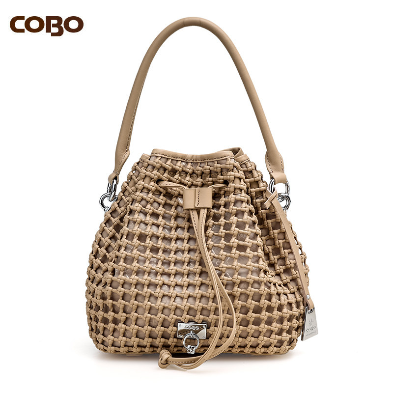 COBO/蔻尔宝头层牛皮手工编织手提单肩斜挎时尚休闲水桶包,精选优质头层牛皮,质感细腻,耐用透气。采用传统手工编织工艺,线条流畅,结构稳固,彰显匠心独运。包型简约大方,水桶设计容量适中,满足日常出行需求。可手提、单肩或斜挎,多场景随心切换,轻松驾驭通勤、约会或休闲时光。金属配件精致耐用,细节考究,提升整体质感。无论是搭配裙装还是裤装,都能为造型增添优雅与个性,是现代女性追求品质与时尚的理想之选。