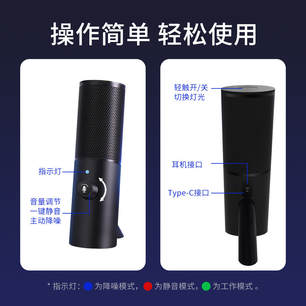 【Onering一声铃】USB麦克风,采用黑色哑光质感设计,外观时尚新潮,适合电脑桌面使用。产品配备RGB灯效,增添炫酷氛围。高品质麦克风,清晰捕捉声音,提供优秀的录音效果,适合音乐制作、视频会议、网络直播等多种场景。插入USB即可使用,操作简单方便。赶快选择这款RGB灯效电脑桌面麦克风,享受无与伦比的音频体验吧!
