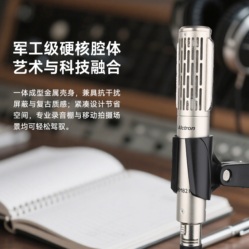 Alctron/爱克创RM821是一款专为录音室和舞台表演设计的专业级无源铝带话筒。其采用先进的铝带技术,音质清晰、准确,适用于直播和K歌等多种场合。该麦克风具有高度的灵敏度和良好的反馈抑制功能,能够捕捉细微的声音变化,确保音频的真实性和自然性。此外,RM821还具备坚固耐用的特点,适合长时间使用。无论是专业歌手还是音乐爱好者,这款麦克风都是理想的选择。无论是舞台演出还是日常直播,RM821都能让你享受卓越的音质体验。