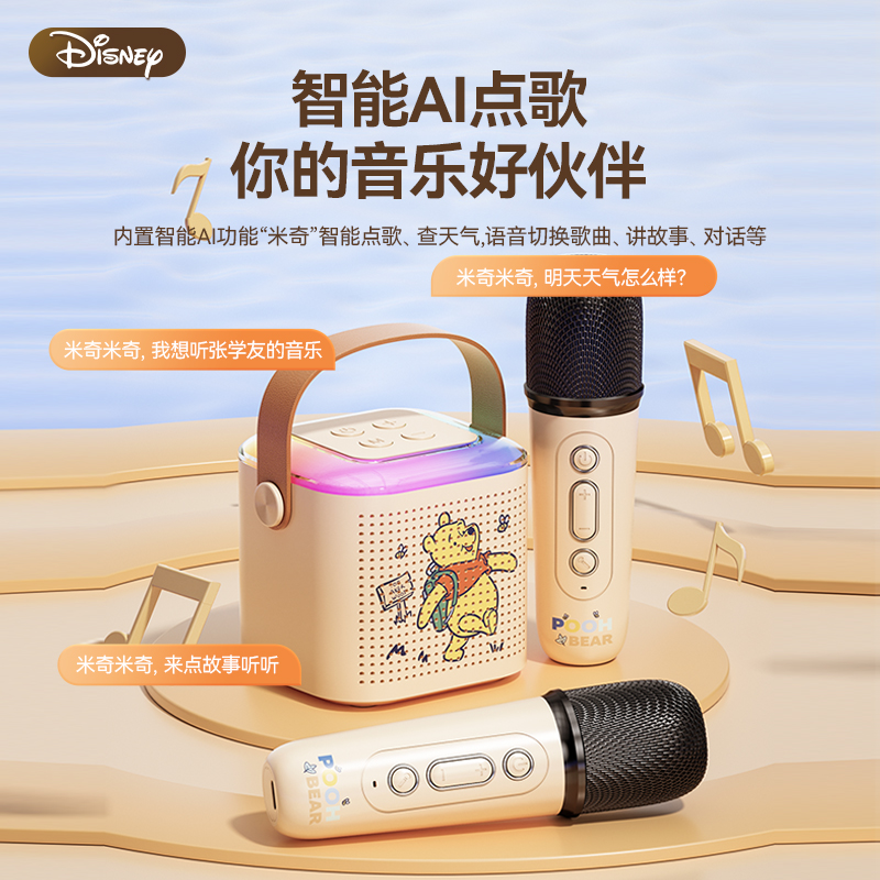 淘宝迪士尼无线蓝牙移动小音响智能Ai话筒儿童k歌家庭唱歌一体麦克风