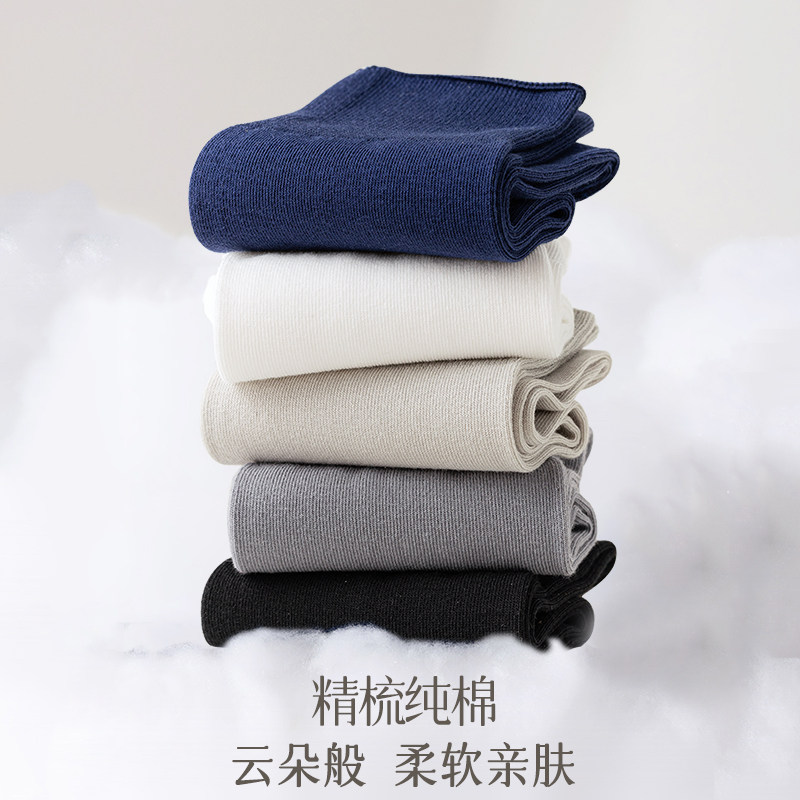 5双 100%纯棉男袜精梳棉防汗防臭中筒袜复古商务风男士秋冬四季款