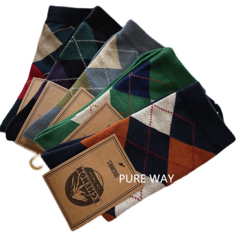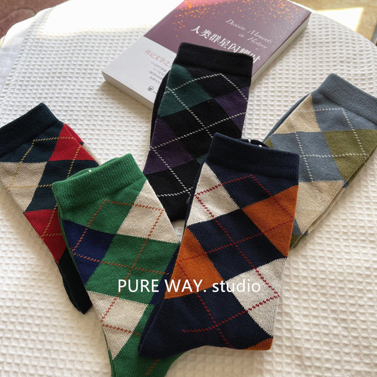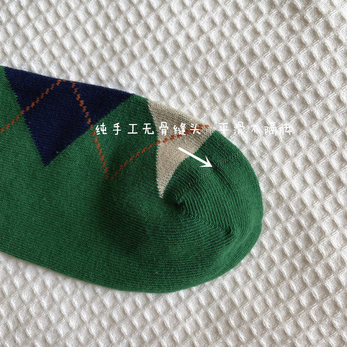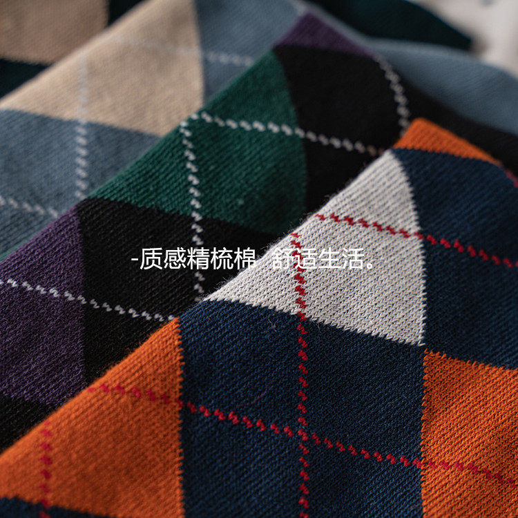 淘宝出口日本无骨袜子男中高筒袜菱格潮男秋冬纯棉商务男袜抗菌防臭