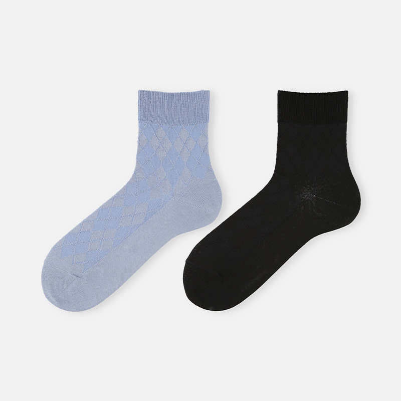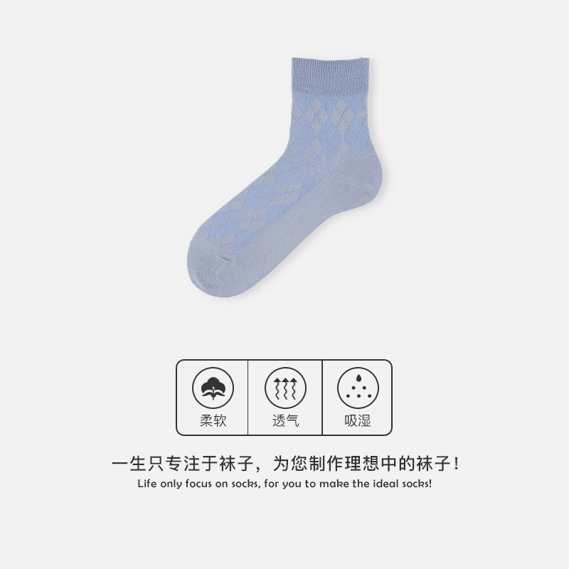 淘鹿人袜子男士四季中筒网眼纯色精梳棉线百搭提花无骨商务男袜7018