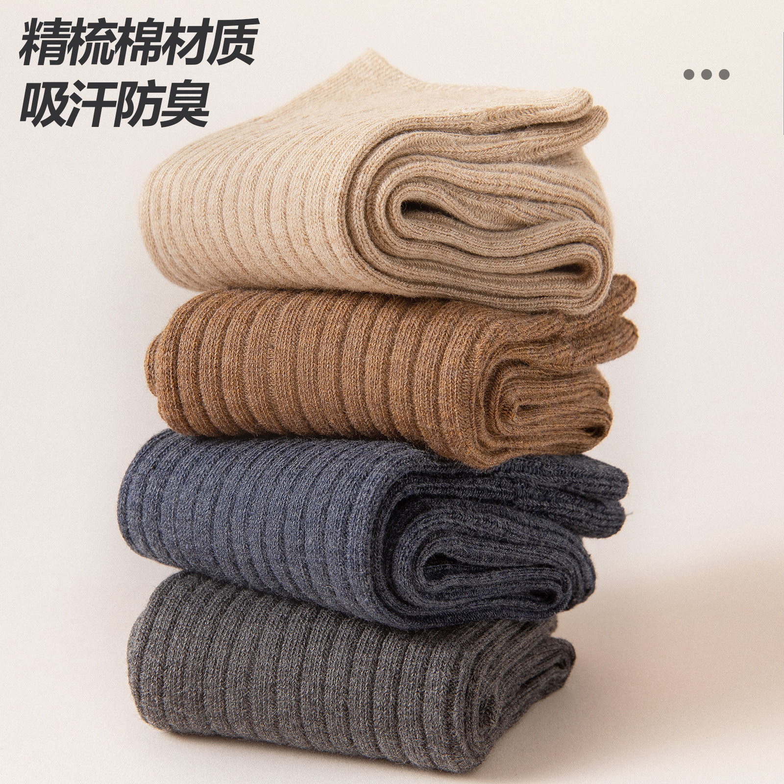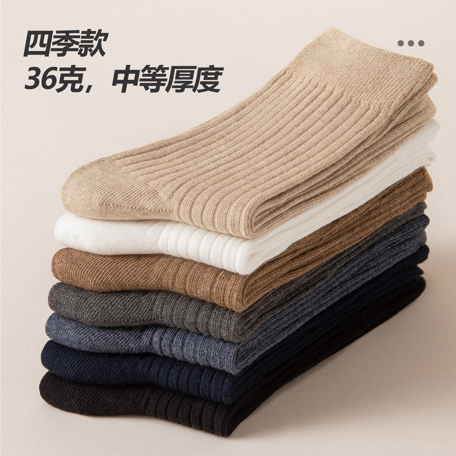 淘宝5双 100%纯棉男袜精梳棉防汗防臭中筒袜复古商务风男士秋冬四季款