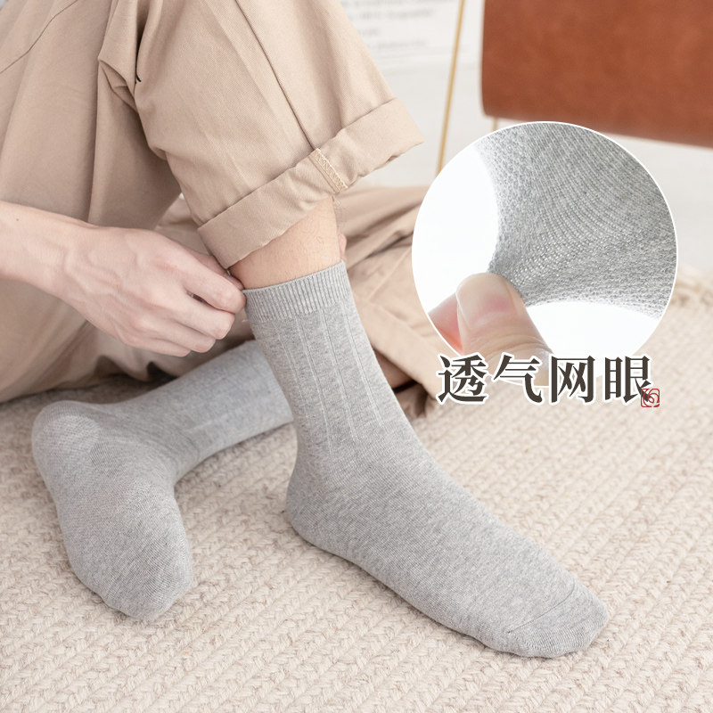 淘男袜子网袜春夏季薄款中筒商务休闲宽松网眼透气吸汗袜纯色男棉袜