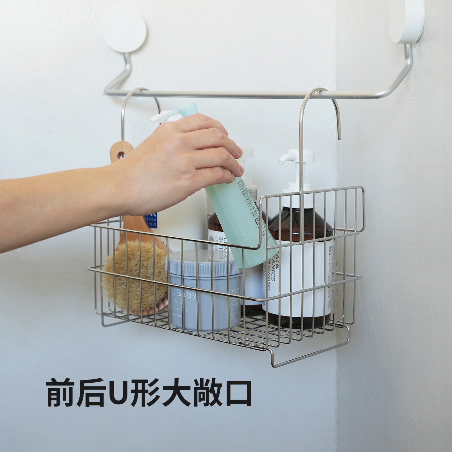 天猫霜山浴室置物架免打孔304不锈钢挂篮大容量放沐浴露洗发水收纳篮