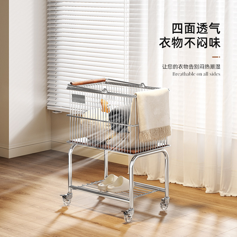 天猫不锈钢中古脏衣篮推车收纳筐浴室置物架落地脏衣篓移动分层洗衣篮